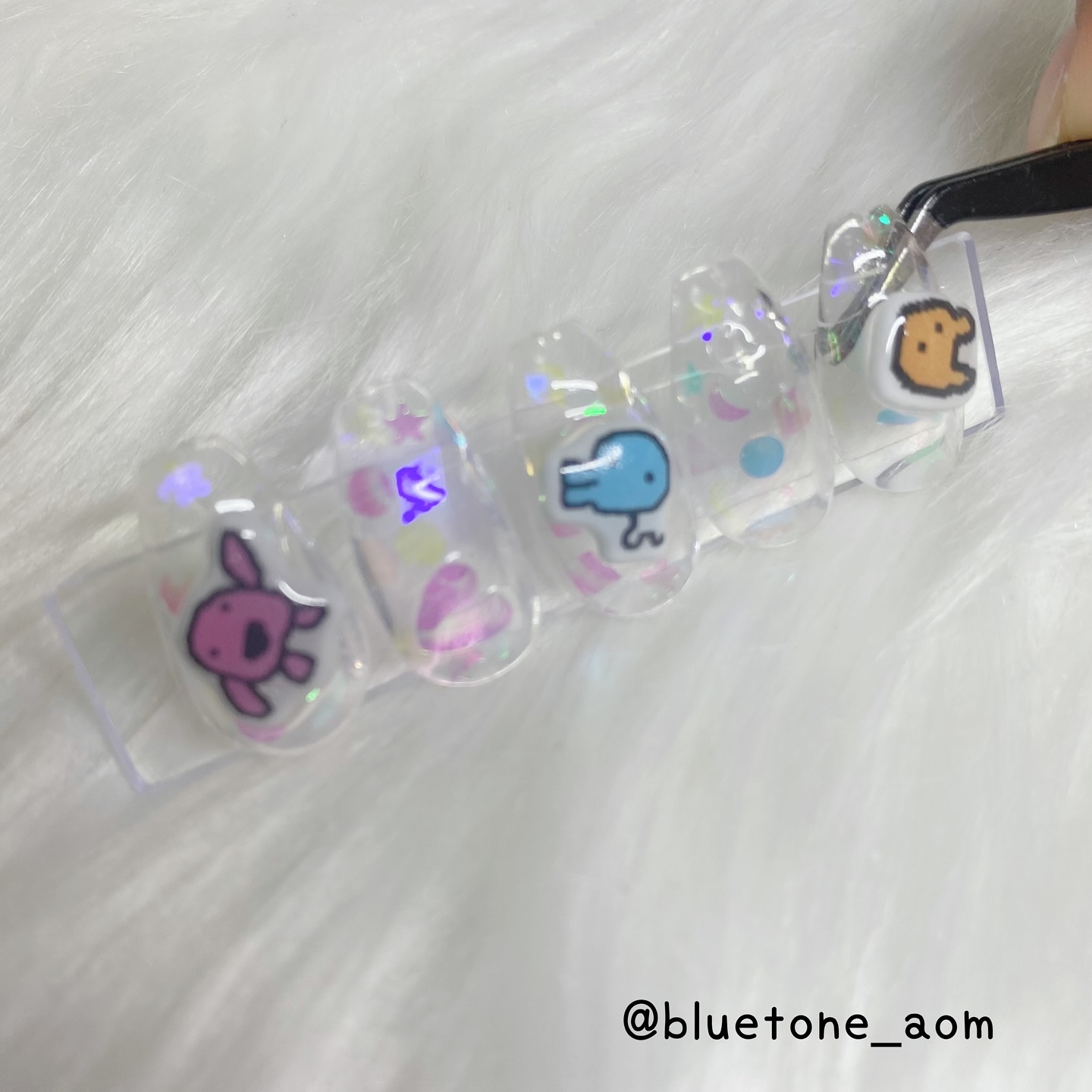 ラメがしっかりしてるし クリアカラーが入ってるから オーロラパウダー無しでも 充分キラキラしました! 反射強めのフィルムなので 実物はもっと うるうるとキラキラが強いです! ビー玉みたい🥺 ネイルシール長持ちさせたいけど ちょっと飽きてきたな〜って時とかに 全然違った印象になるのでオススメです! Seriaのベースジェル 本当にうるうるネイルしやすいので オススメしたい🙆♀️