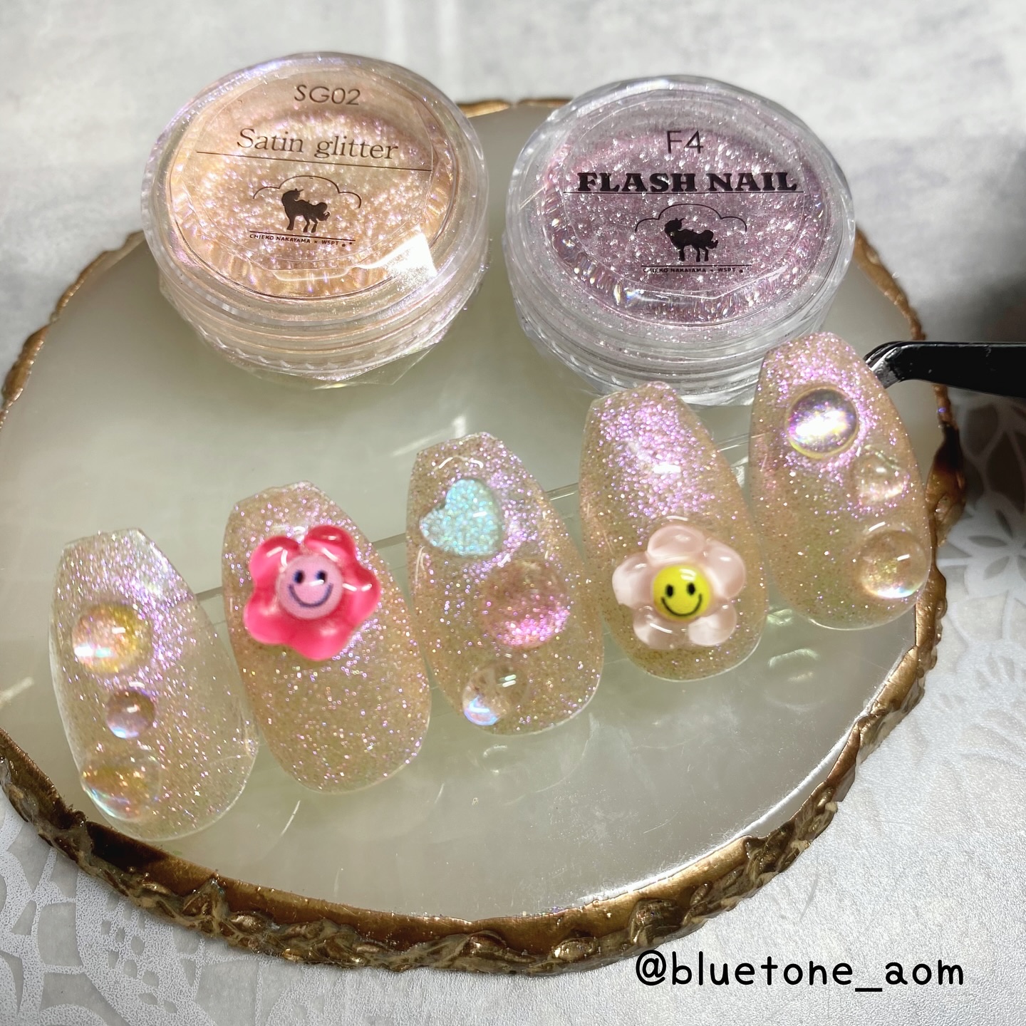 ベースカラーを塗ったらノンワイプトップを塗って硬化します。 クリア→ミラー感はあるけど、発色はそこまで濃くないのでガッツリシルバーを求めてる人は物足りないかも🤔 ホワイト→キレイにシルバーになりました! ミルキーホワイト→シャンパンゴールドみたいな落ち着いたゴールドっぽくなりました😳 ブラック→キレイにシルバーに!やっぱりブラックとシルバーは映えますね🤝ギラギラです! パウダーの粒子はちょっと大きめなのでちょっと不安でしたが擦ってみるとキレイにミラーになりました! ベースカラーで見え方も変わるので色々試しても面白いかもです🥰