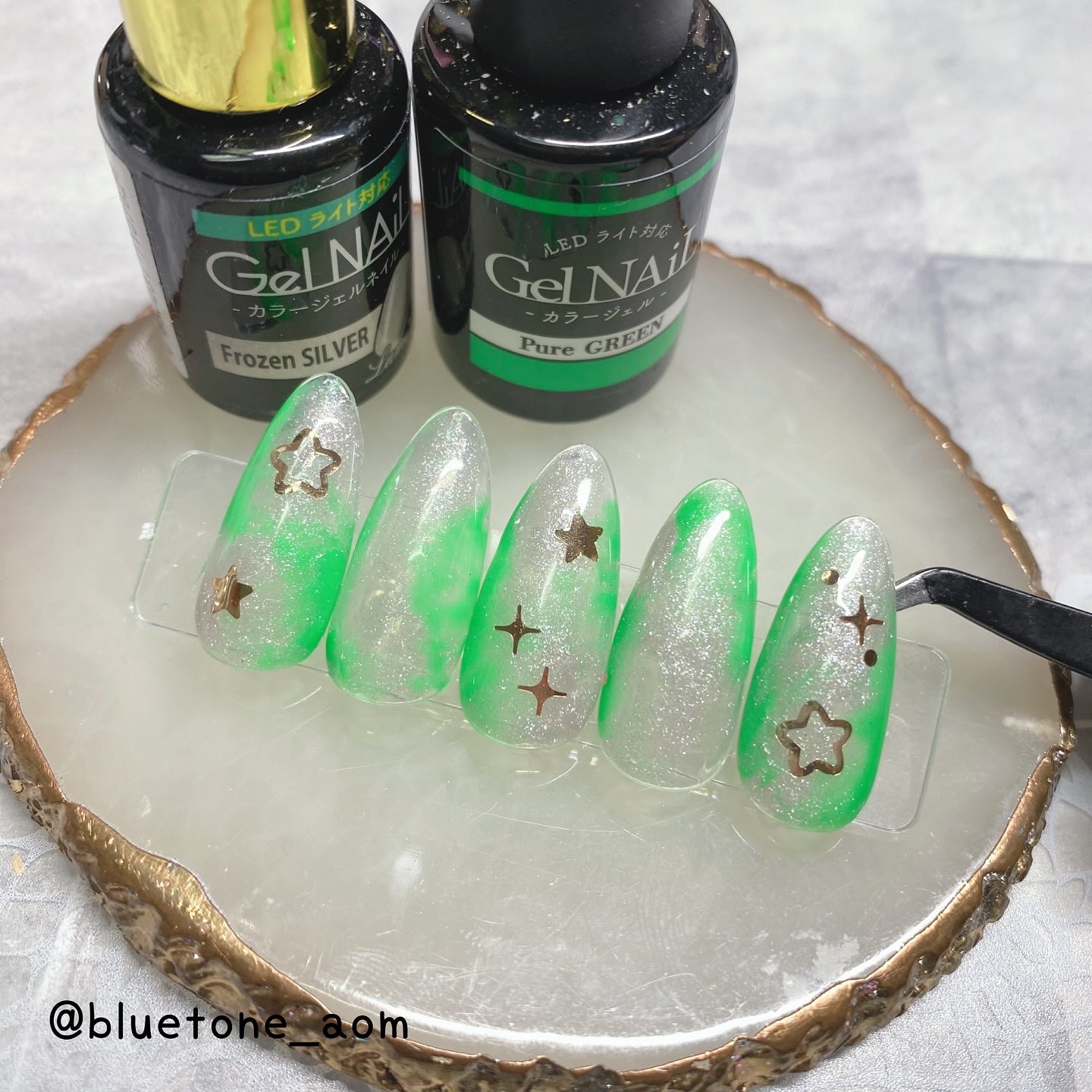 ベースカラーを塗ったらノンワイプトップを塗って硬化します。 クリア→ミラー感はあるけど、発色はそこまで濃くないのでガッツリシルバーを求めてる人は物足りないかも🤔 ホワイト→キレイにシルバーになりました! ミルキーホワイト→シャンパンゴールドみたいな落ち着いたゴールドっぽくなりました😳 ブラック→キレイにシルバーに!やっぱりブラックとシルバーは映えますね🤝ギラギラです! パウダーの粒子はちょっと大きめなのでちょっと不安でしたが擦ってみるとキレイにミラーになりました! ベースカラーで見え方も変わるので色々試しても面白いかもです🥰