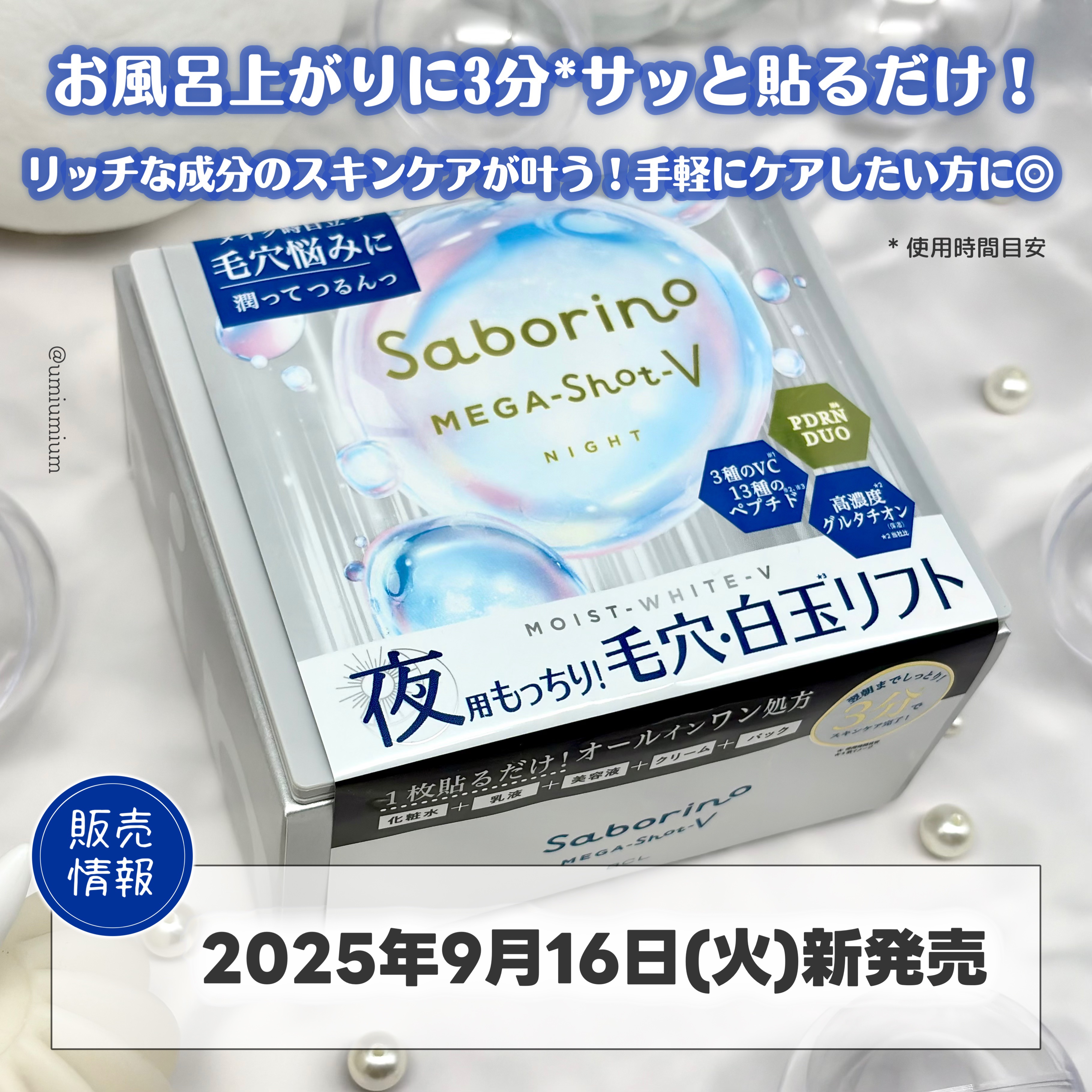 大人の肌悩みに!サボリーノの新作パック❤︎サボリーノメガショット夜用白玉*タイトニングマスクV32枚入り2,530円(税込)*¹もうすぐ30代突入…!🥹乾燥による毛穴目立ち印象や顔のゆるみ感が気になってきて、しっかりお手入れしないとな〜と思っ...