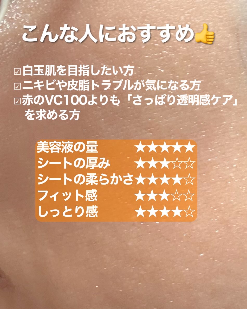 | スキンケアランキング第77位 | 肌あたりがよく薄くて柔らかいシートが密着してヨレにくい!お米のようなまろやかな感じで乳液っぽい美容液💓 | 詳細を見る | |