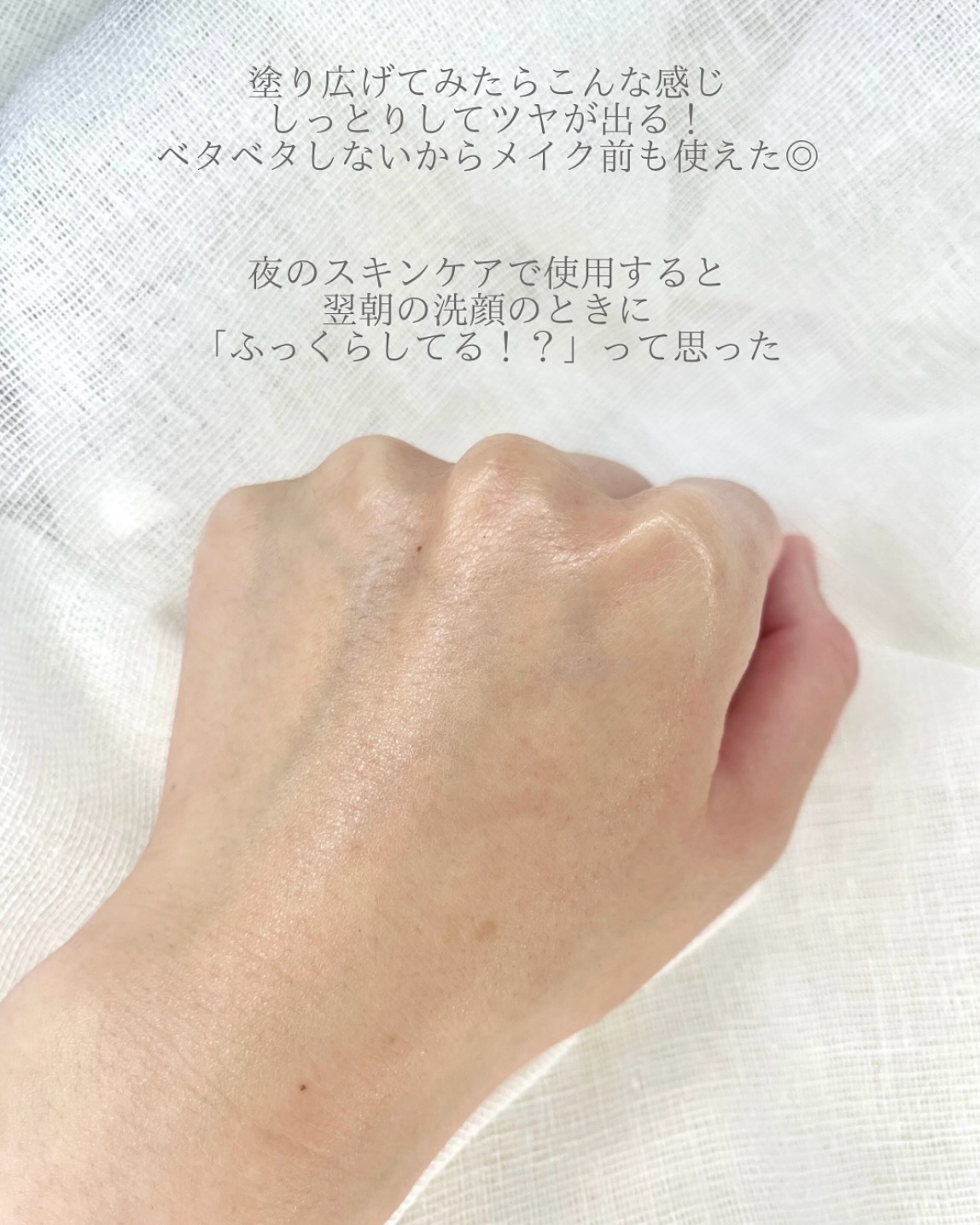 | すこしとろみのあるテクスチャーで、伸び肌馴染み共に◎べとつかないけどしっとり保湿してくれます! | 詳細を見る | ||