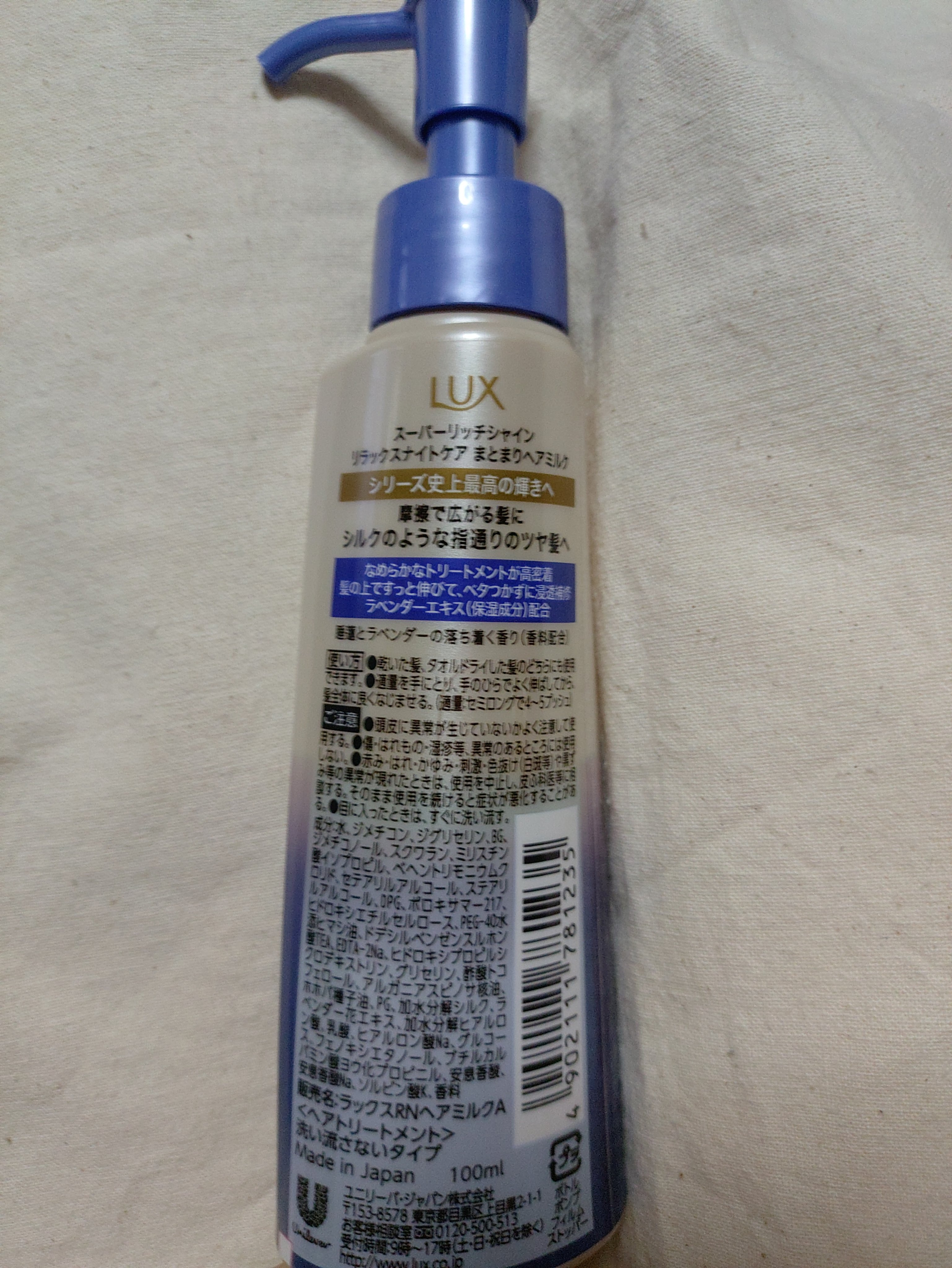 商品詳細情報LUX ラックス スーパーリッチシャイン リラックスナイトケア まとまりヘアミルク