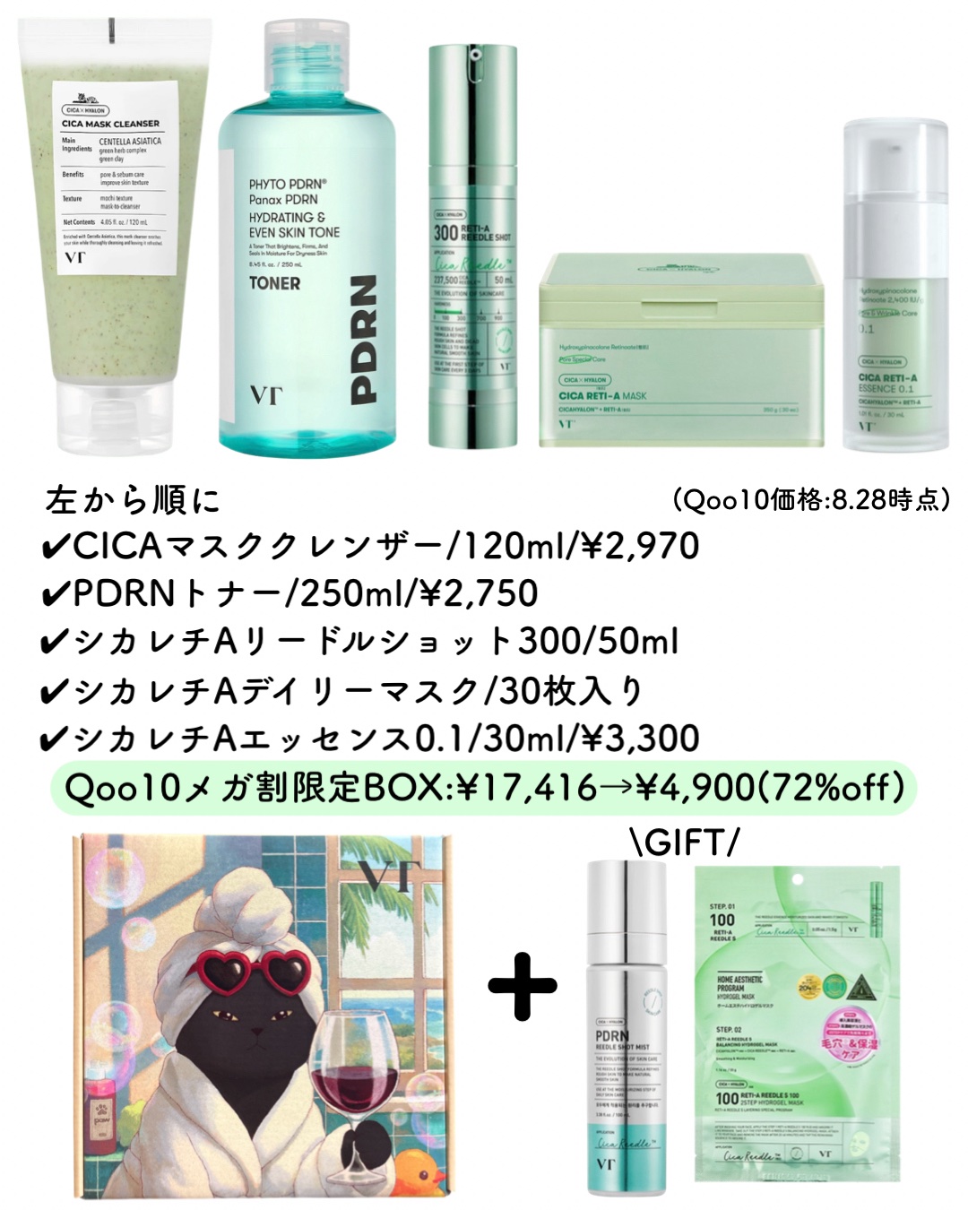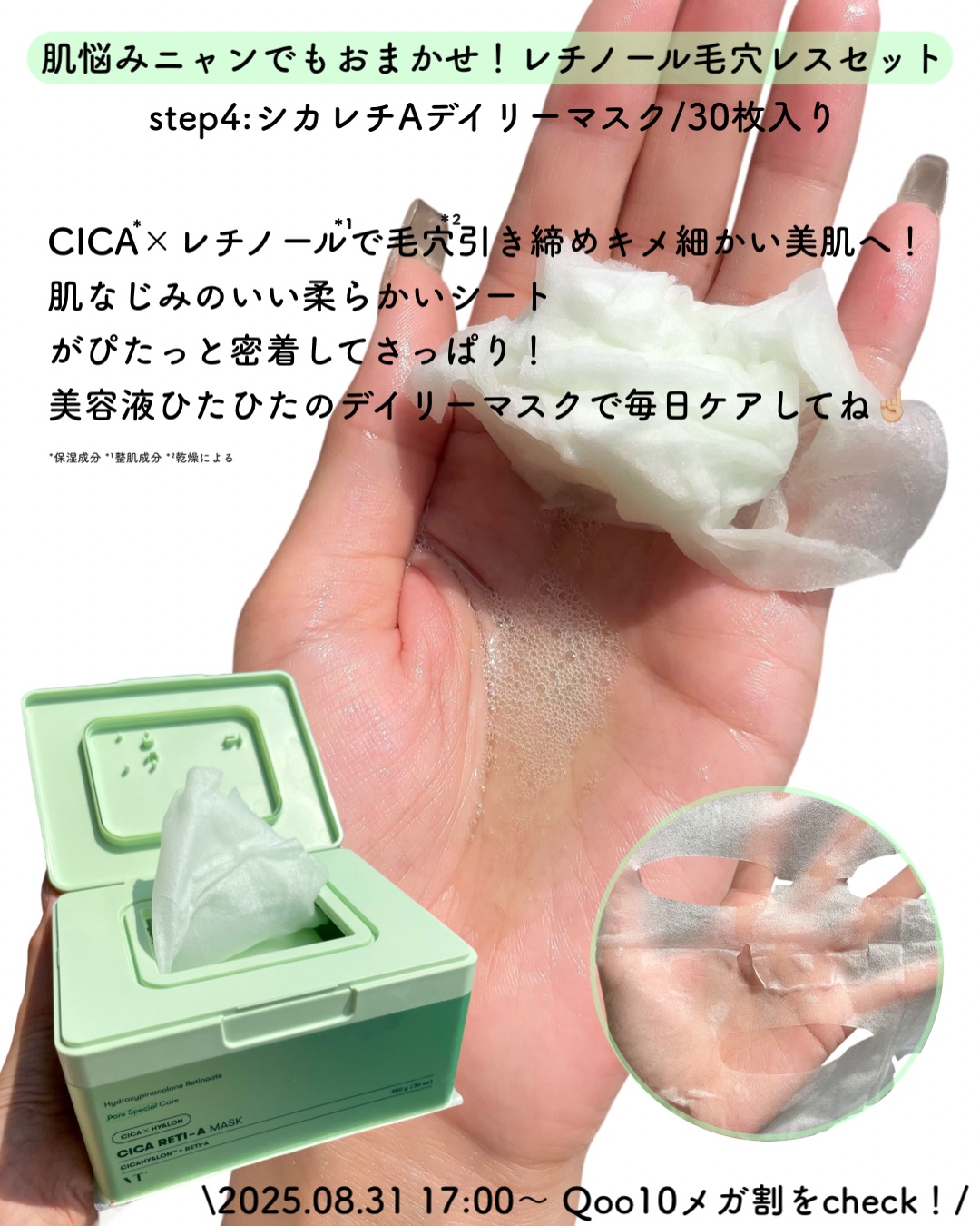 VT肌悩みニャンでも おまかせセット『レチノール毛穴レスセット』夏の紫外線☀️や皮脂でダメージを受けた肌‥💦どんなケアしますか❓気づけば毛穴が目立っていませんか❓そんな時のレスキューがVTの『シカレチA』❤︎VTの毛穴レスセットを使って洗浄...