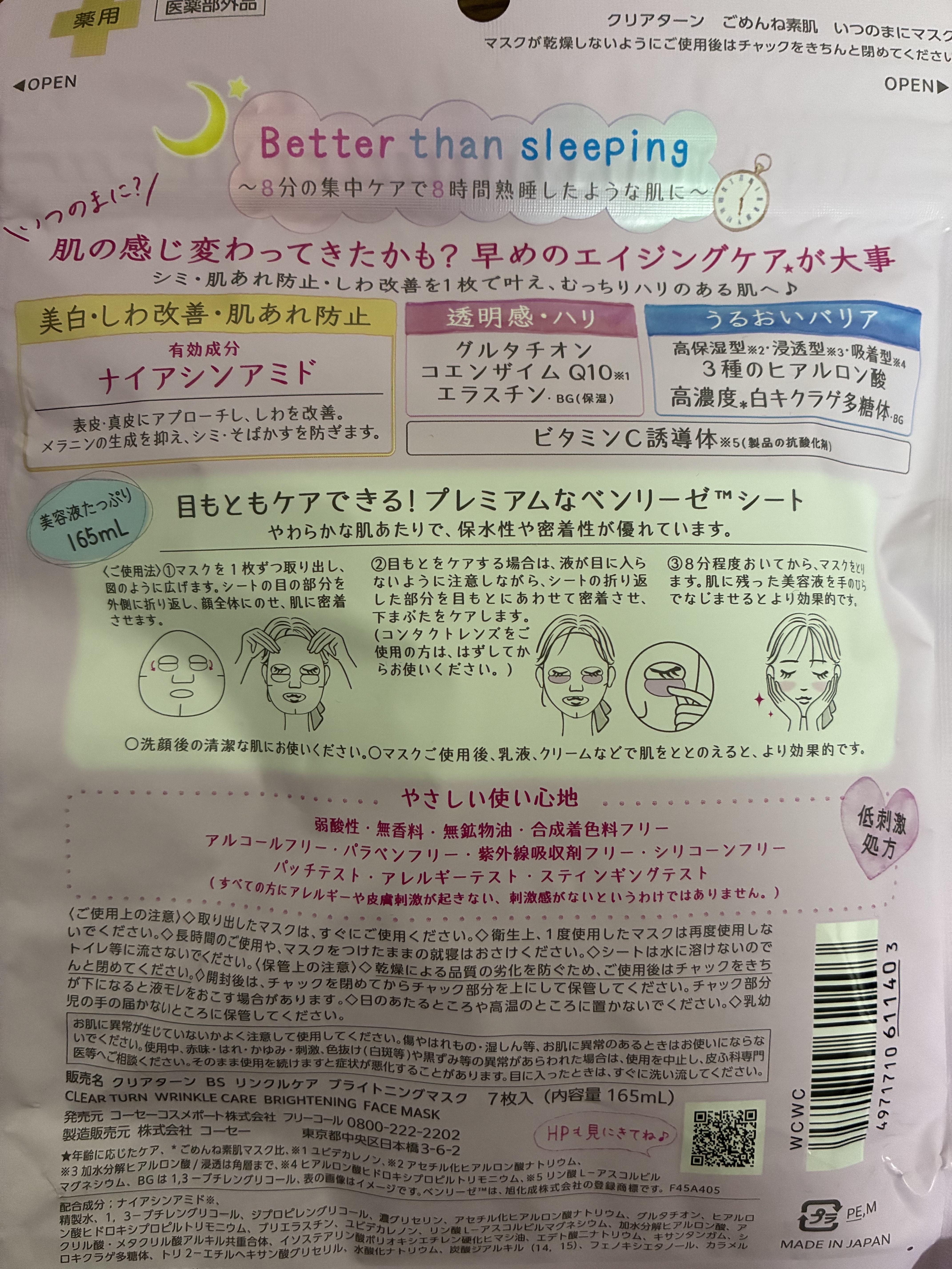 LemonSquareを通じて、【コーセーコスメポート株式会社】から【ごめんね素肌 いつのまにマスク】を提供して頂きました。[PR:ごめんね素肌]クリアターンごめんね素肌 いつのまにマスク販売名:クリアターン BS リンクルケア ブライトニン...