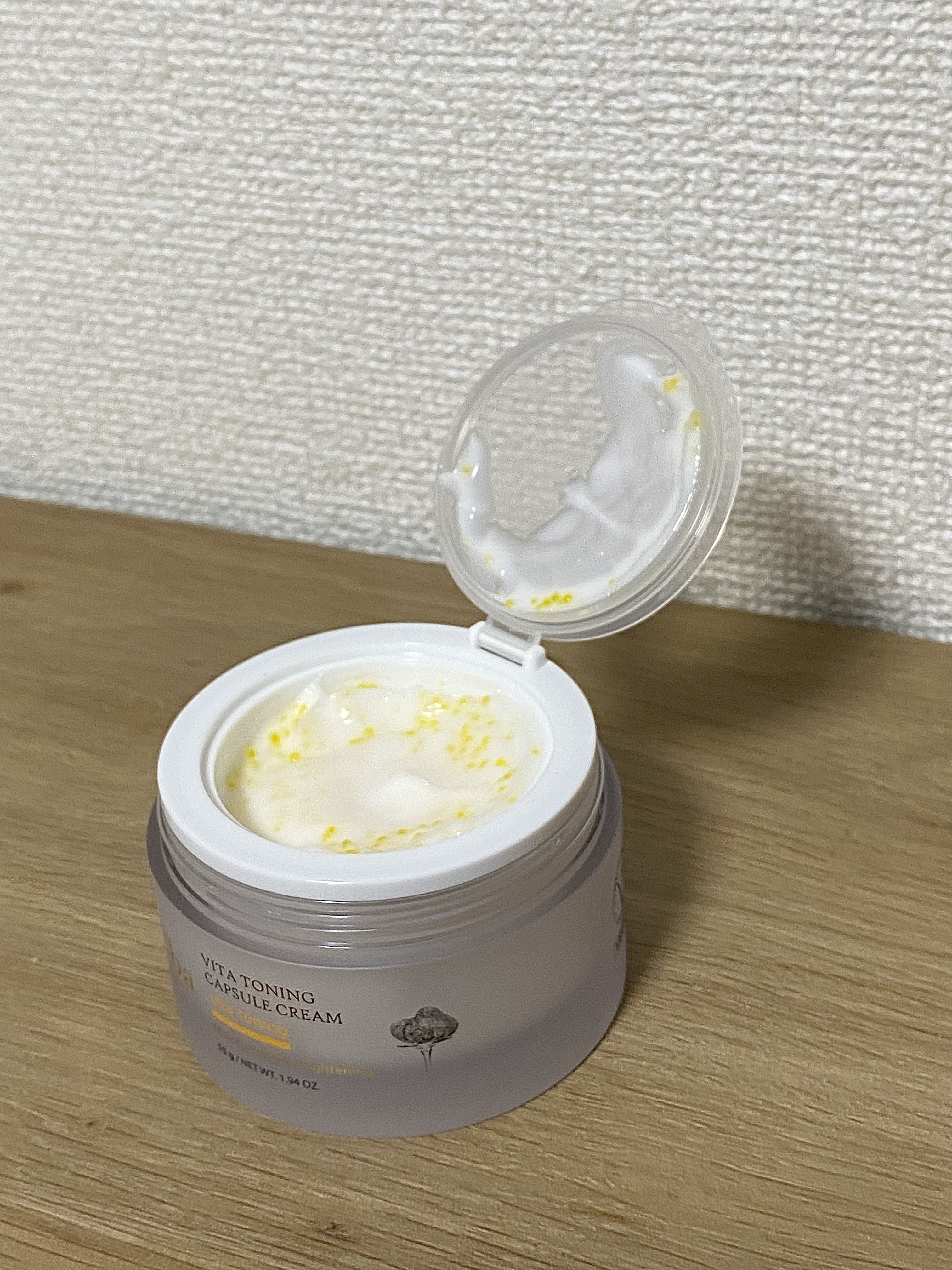 @dalba_japanビタトーニングカプセルクリームを試させていただきました◎つぶつぶカプセルが中に入ってるの❣️黄色のつぶつぶが塗り広げるとぷちっと潰れてなめらか〜!!特許を取得した膜なしのビタカプセルなんだって☺️💕ビタカプセル、個人的...