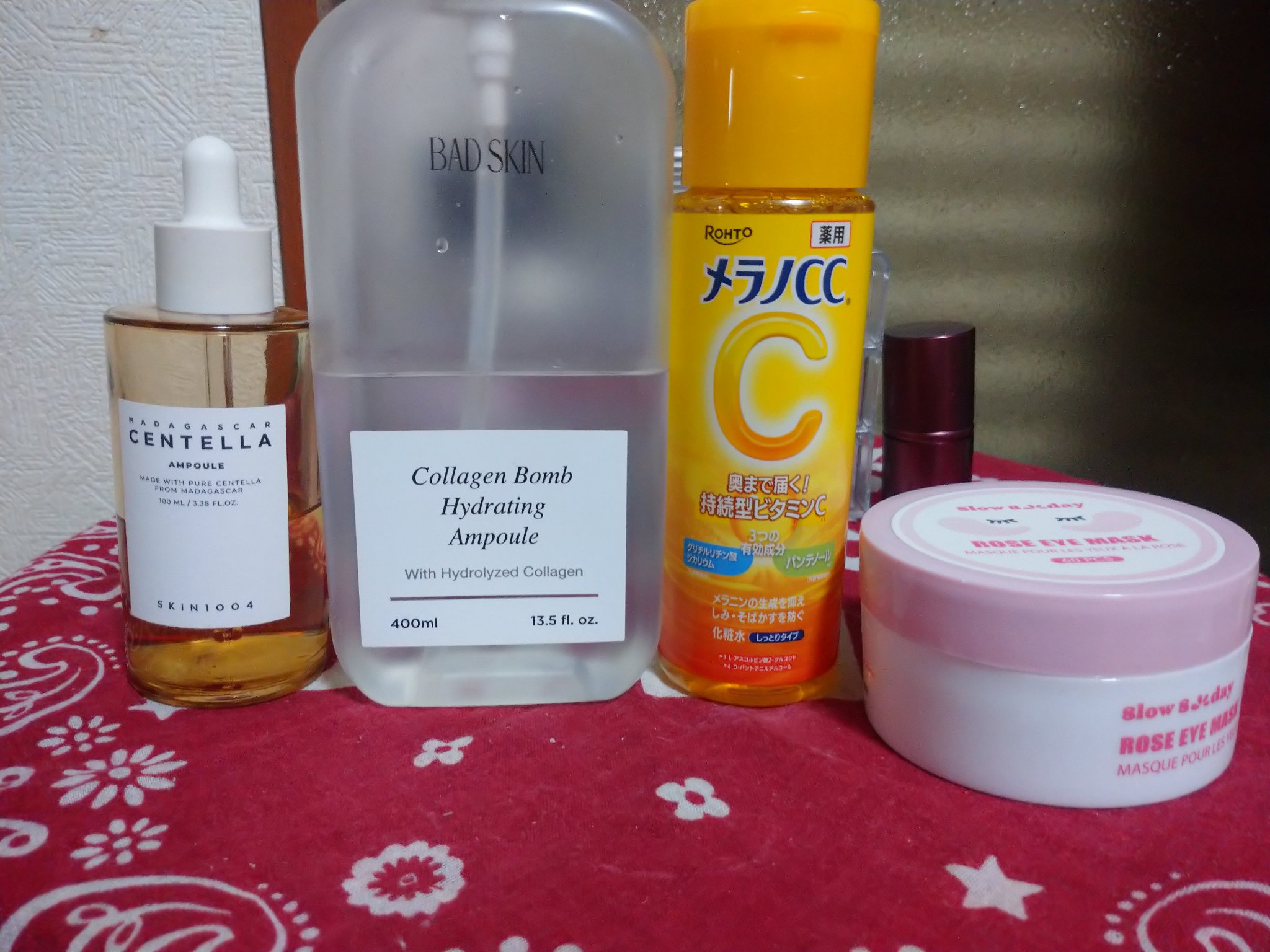 水洗顔➭なめらか本舗ミスト化粧水 N➭とろーり化粧水シンプリー➭LIHAWモイスチャーローション(ジャバジャバ化粧水)➭DAISOCICA ローション➭シカモイストオールインワンゲル(軽いマッサージ)➭美白マスク➭肌ラボ白潤プレミアム薬用浸透美白化粧水➭美容液➭肌ラボ白潤プレミアム 薬用浸透美白乳液