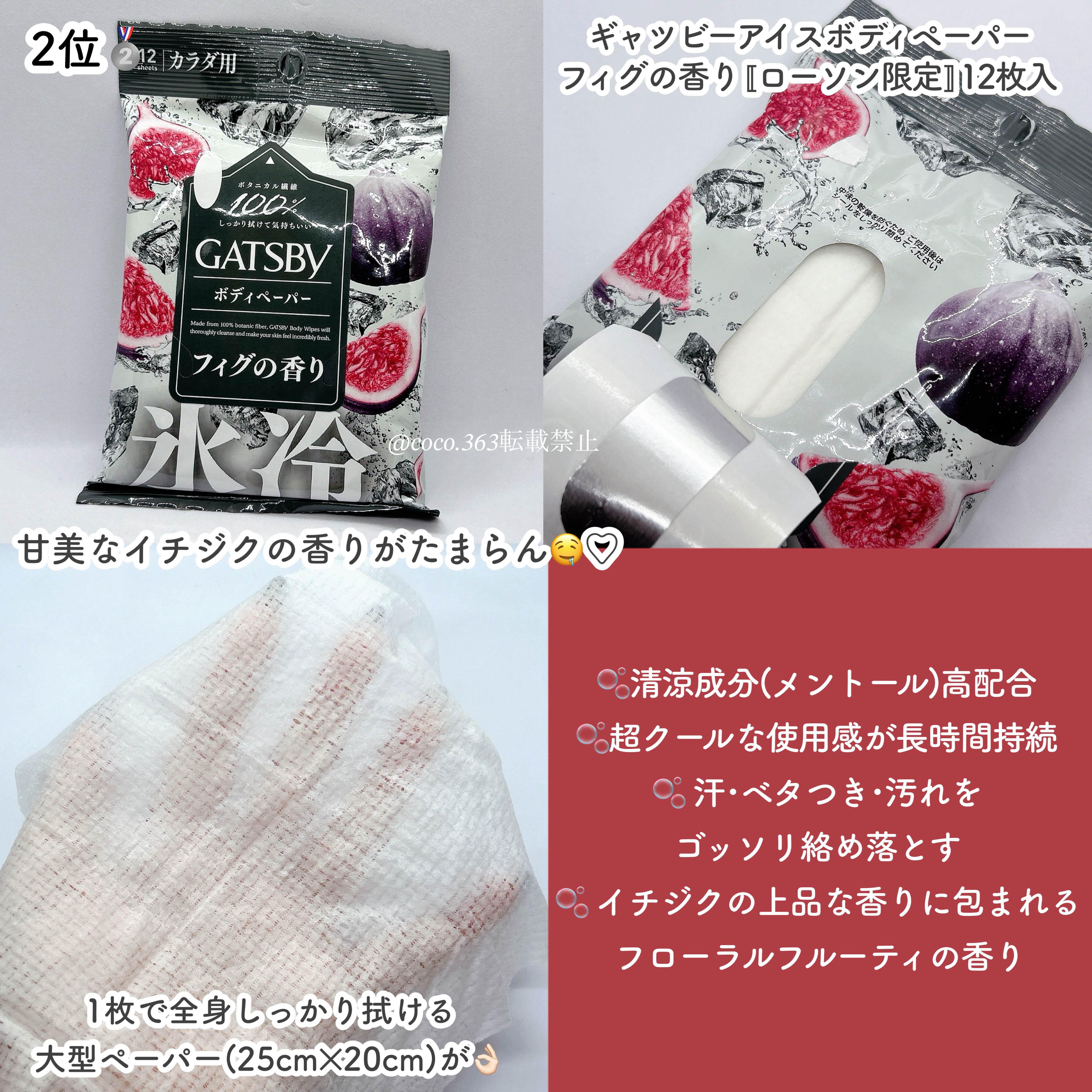 ギャツビー アイスデオドラントボディペーパー アイスフルーティ | 385円 |