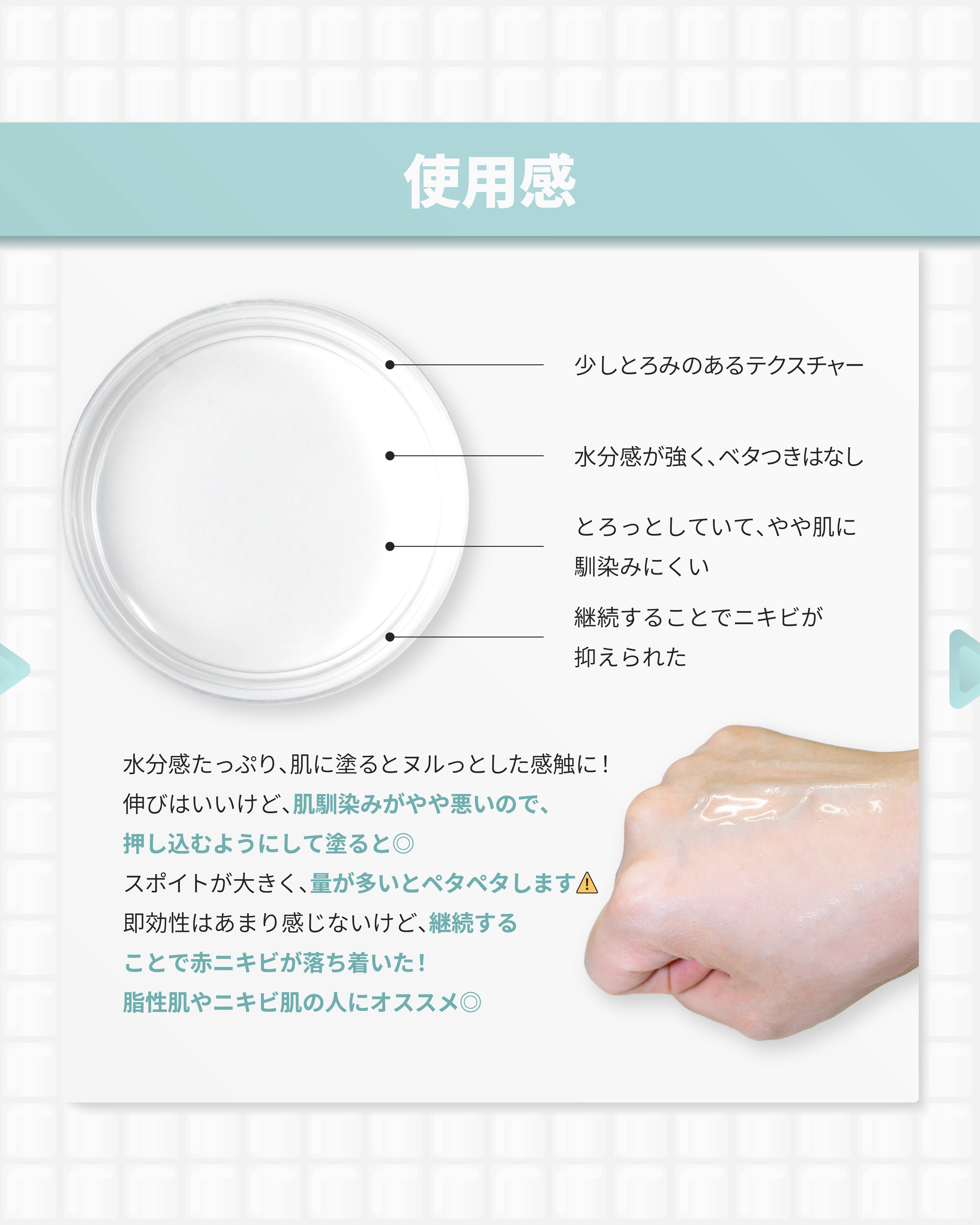| すこしとろみのあるテクスチャーで、伸び肌馴染み共に◎べとつかないけどしっとり保湿してくれます! | 詳細を見る | ||