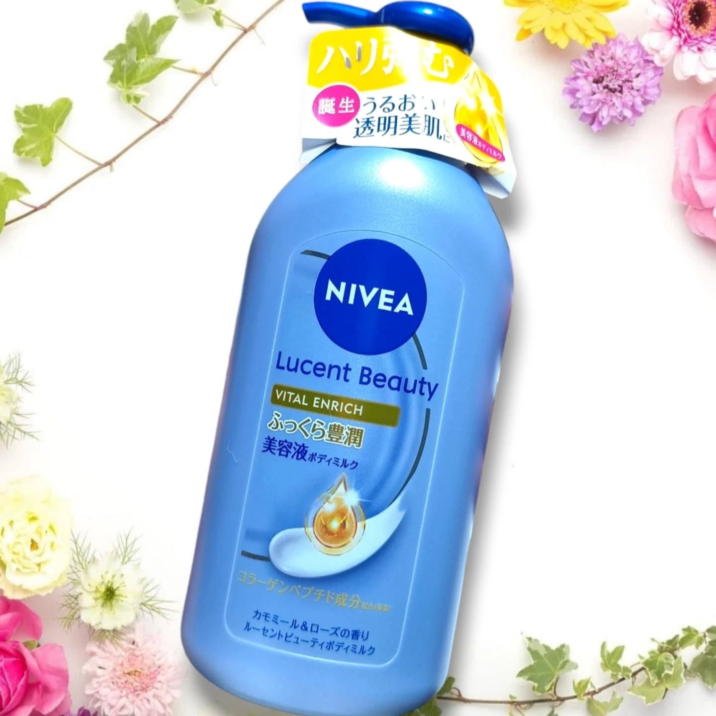 ニベア花王からいただきましたニベアルーセントビューティバイタルエンリッチふっくら豊潤美容液ボディミルク美容液を直接ボディに塗ってる感覚ですとろみがあってみずみずしく乾燥している肌にふっくらとした使用感を感じるニベアが考えるボディの美肌の鍵『キ...