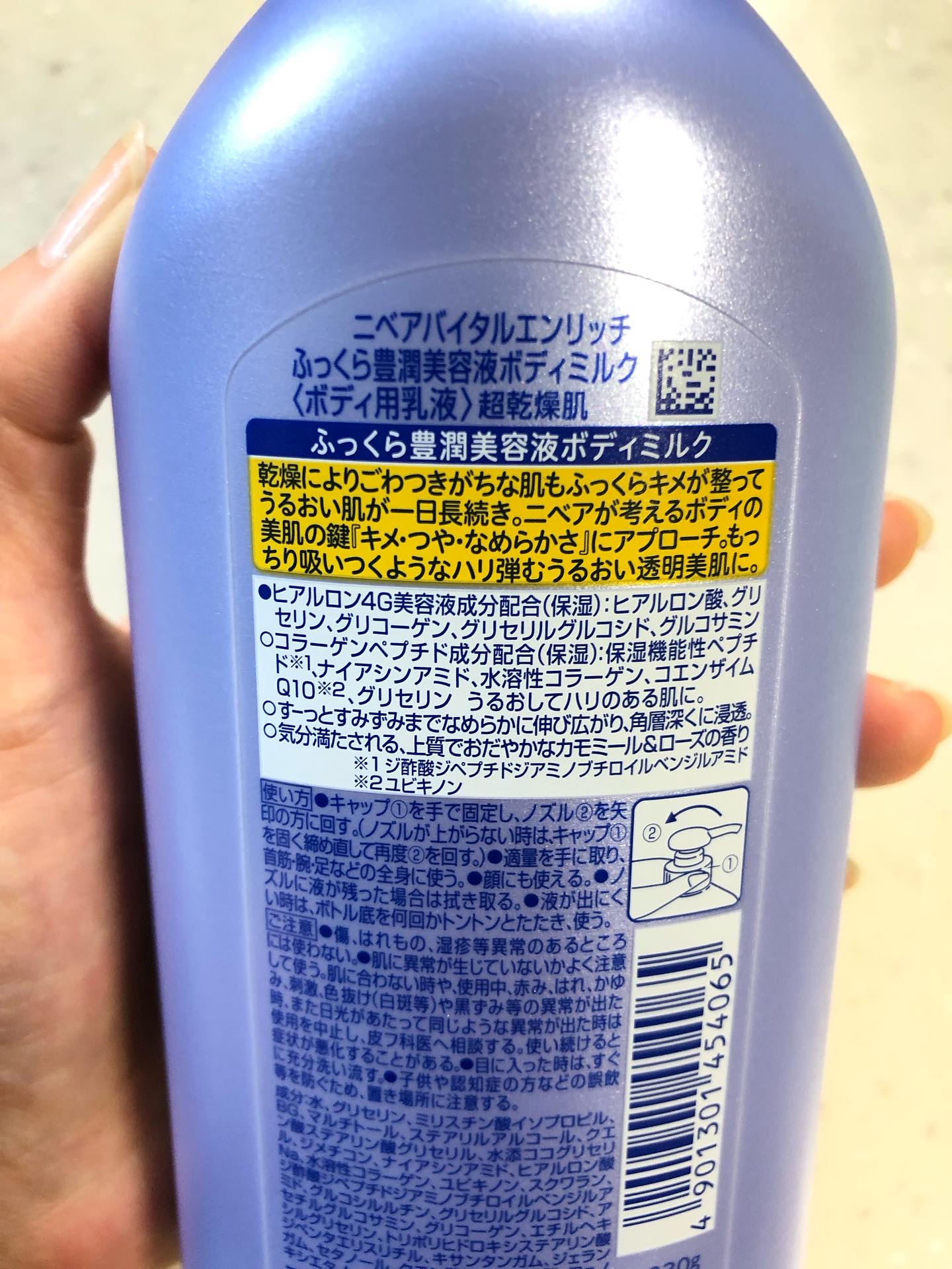 - うるおって透明感あふれる美肌へ導く、高保湿美容液ボディミルクシリーズ。 ニベアが考えるボディの美肌の鍵「キメ・つや・なめらかさ」にアプローチ。 うるおいに満ちて透明感のある肌に導く。ヒアルロン4G美容液成分※1 配合(保湿) もっちり吸いつくようなハリ弾むうるおい透明美肌に。乾燥によりごわつきがちな肌もふっくらキメが整ってうるおい肌が長続き。 コラーゲンペプチド成分配合:保湿機能性ペプチド※2、ナイアシンアミド、水溶性コラーゲン、コエンザイムQ10※3、グリセリン(すべて保湿) うるおしてハリのある肌に 気分満たされる、上質でおだやかなカモミール&ローズの香り ※1 ヒアルロン酸、グリセリン、グリコーゲン、グリセリルグルコシド、グルコサミン ※2 ジ酢酸ジペプチドジアミノブチロイルベンジルアミド ※3 ユビキノン