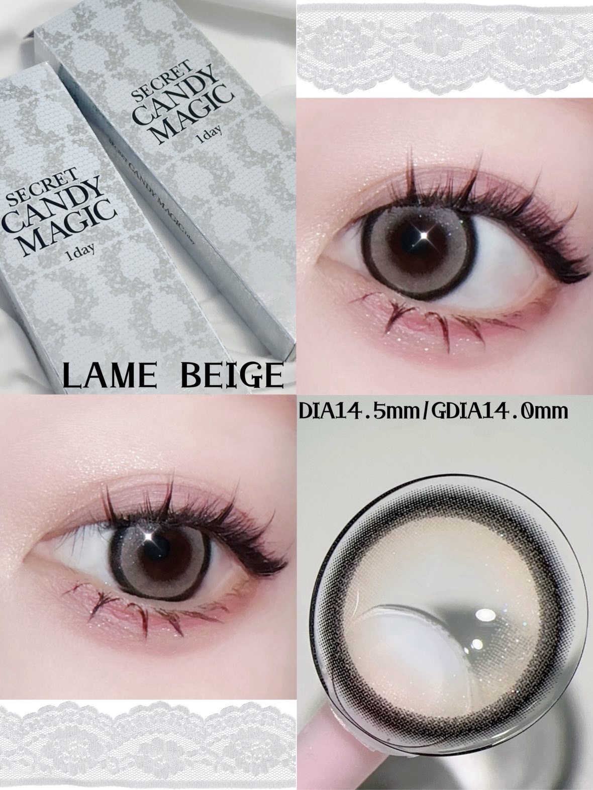 キラキラ発色のラメ入りカラコン✨🧚🏻♀️💎SECRETCANDYMAGIC20枚入り¥2,486(税込)DIA:14.5mmG.DIA:14.0mmBC:8.6mm含水率:58.0%🩶LameBeigeめっちゃ可要すぎん?!オーロララ...