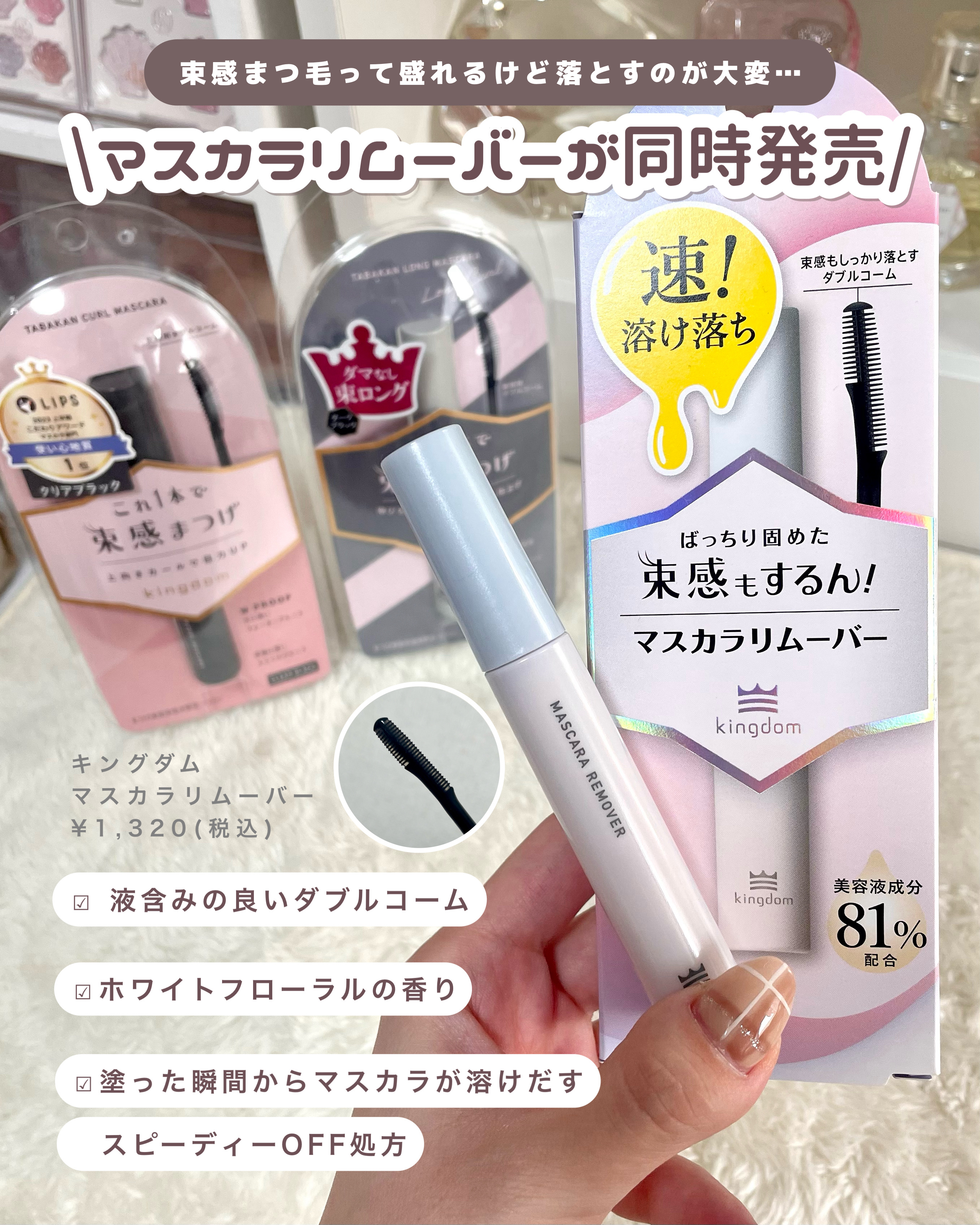 キングダムの新商品をご紹介✨▶︎マスカラリムーバー束感ロングマスカラも素早くオフ塗った瞬間、マスカラ溶け出す。こすらずスルン!▶︎リキッドアイライナーTP〈ブラックブラウン〉アイドルメイクの神「夢月」さん監修ブレない×かすれない!泣いても盛れ...