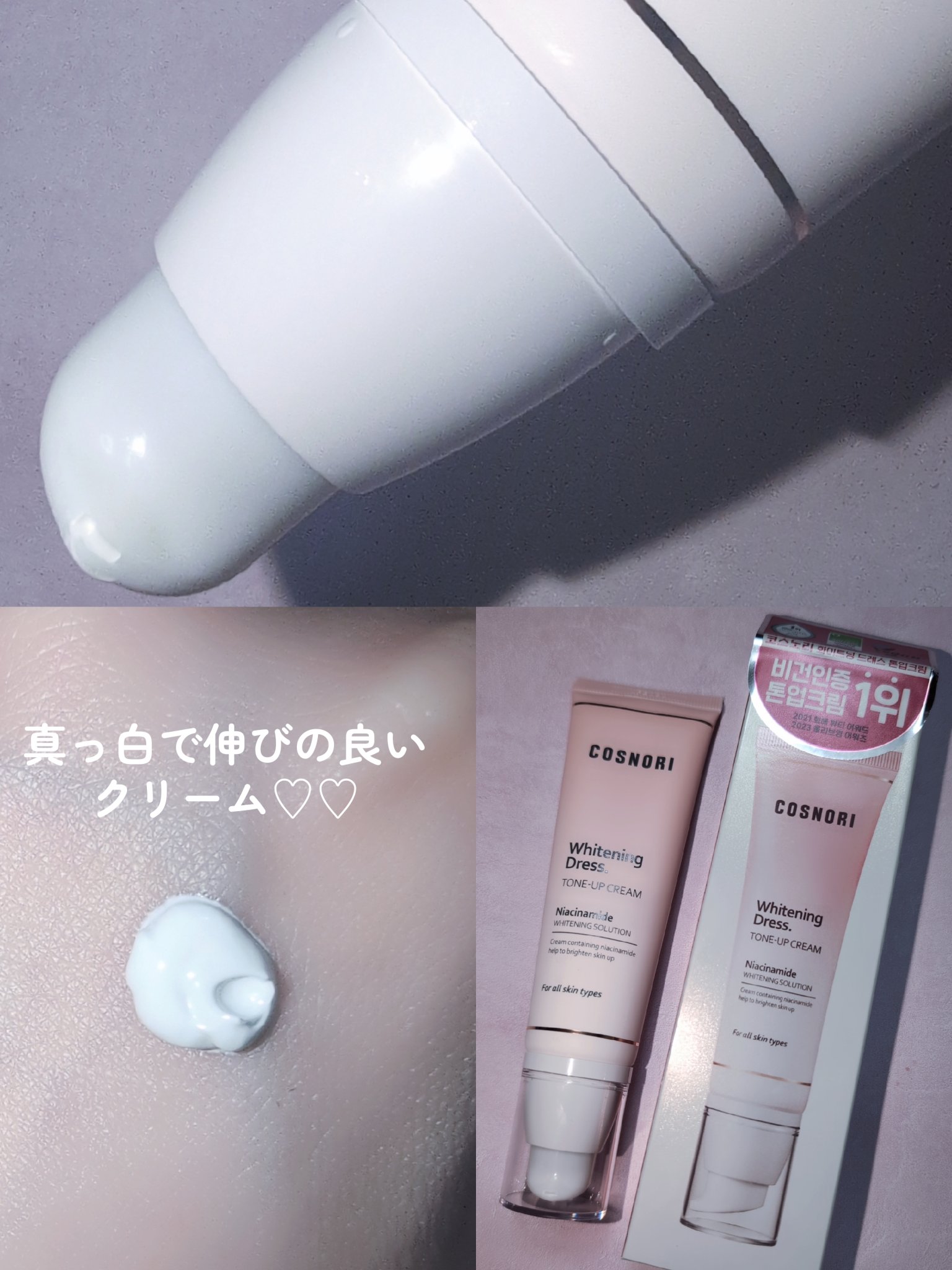 ...COSNORIホワイトニングドレストーンアップクリーム🫧ひと塗りするだけで全身トーンアップ🐣(デリケートゾーンまで使えるよ)ベースメイクの邪魔をしないさらっとした仕上がりなのが好き🫶白浮きせず自然にトーンア...