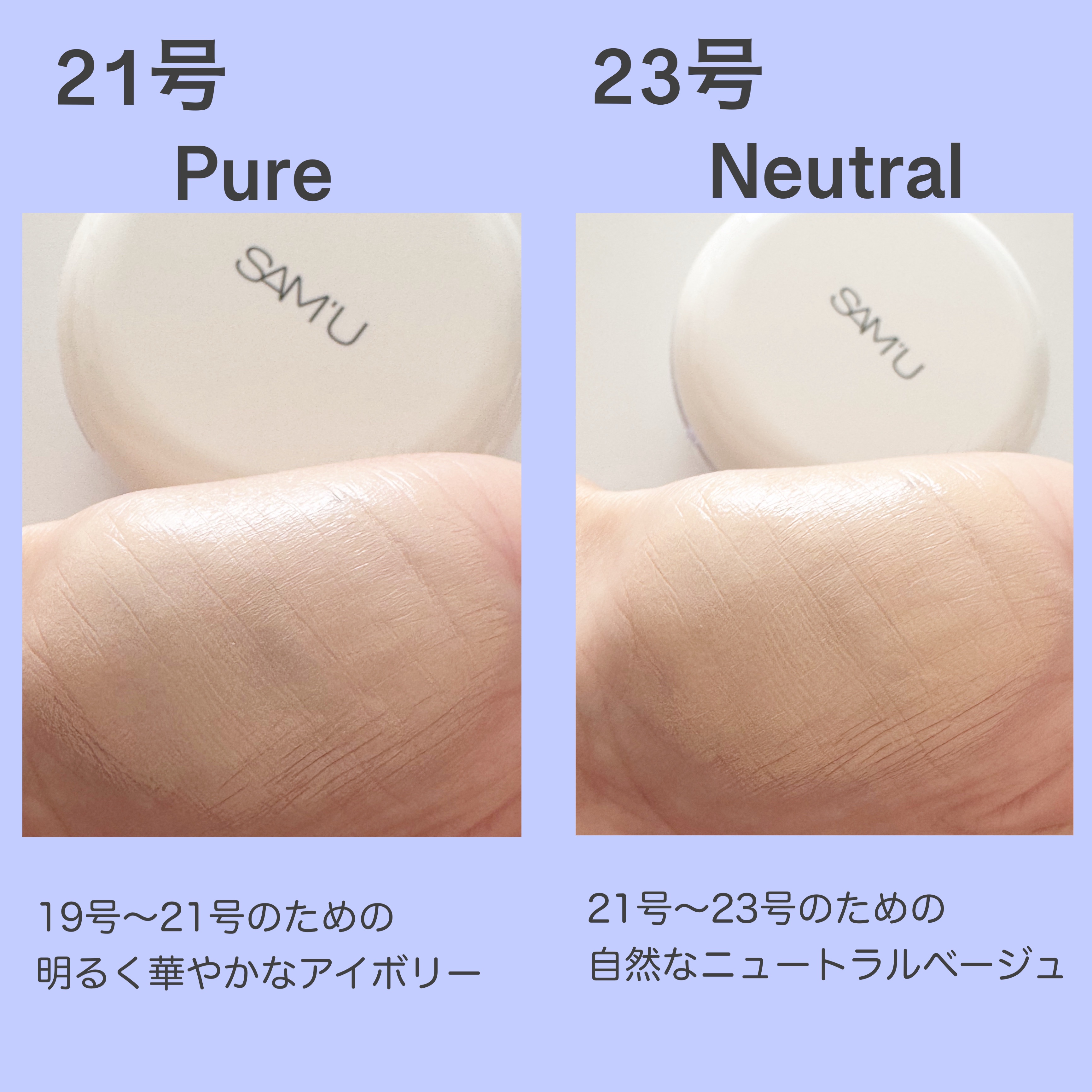 - <21号 ピュア> 水、酸化チタン、シクロペンタシロキサン、メトキシケイヒ酸エチルヘキシル、プロパンジオール、酸化亜鉛、ジフェニルシロキシフェニルトリメチコン、グリセリン、フェニルベンズイミダゾールスルホン酸、(カプリル酸/カプリン酸)ヤシアルキル、セチルPEG/PPG-10/1ジメチコン、ラウリルPEG-8ジメチコン、メチルトリメチコン、ナイアシンアミド、トリメチルシロキシケイ酸、イソドデカン、トロメタミン、BG、ジメチコン、パルミチン酸エチルヘキシル、PEG-10ジメチコン、塩化Na、トリメリト酸トリトリデシル、ジステアルジモニウムヘクトライト、フェニルプロピルジメチルシロキシケイ酸、マイカ、酸化鉄、合成フルオロフロゴパイト、1,2-ヘキサンジオール、ポリメタクリル酸メチル、ポリヒドロキシステアリン酸、スベリヒユエキス、パンテノール、(ジメチコン/ビニルジメチコン)クロスポリマー、ポリシリコーン-11、トリエトキシカプリリルシラン、カプリリルグリコール、ハイドロゲンジメチコン、オキシ水酸化Al、水添ポリデセン、香料、エチレンジアミンジコハク酸3Na、エチルヘキシルグリセリン、カラミン、キシリチルグルコシド、アデノシン、無水キシリトール、(エチレン/プロピレン)コポリマー、水添レシチン、ヒアルロン酸、加水分解ヒアルロン酸、ヒアルロン酸Na、キシリトール、乳酸桿菌培養溶解質、セイヨウタンポポ葉エキス <23号 ニュートラル> 水、酸化チタン、シクロペンタシロキサン、メトキシケイヒ酸エチルヘキシル、プロパンジオール、酸化亜鉛、ジフェニルシロキシフェニルトリメチコン、グリセリン、フェニルベンズイミダゾールスルホン酸、(カプリル酸/カプリン酸)ヤシアルキル、セチルPEG/PPG-10/1ジメチコン、ラウリルPEG-8ジメチコン、メチルトリメチコン、ナイアシンアミド、トリメチルシロキシケイ酸、イソドデカン、トロメタミン、BG、ジメチコン、パルミチン酸エチルヘキシル、PEG-10ジメチコン、塩化Na、トリメリト酸トリトリデシル、ジステアルジモニウムヘクトライト、フェニルプロピルジメチルシロキシケイ酸、酸化鉄、マイカ、合成フルオロフロゴパイト、1,2-ヘキサンジオール、ポリメタクリル酸メチル、ポリヒドロキシステアリン酸、スベリヒユエキス、パンテノール、(ジメチコン/ビニルジメチコン)クロスポリマー、ポリシリコーン-11、トリエトキシカプリリルシラン、カプリリルグリコール、ハイドロゲンジメチコン、オキシ水酸化Al、水添ポリデセン、香料、エチレンジアミンジコハク酸3Na、エチルヘキシルグリセリン、カラミン、キシリチルグルコシド、アデノシン、無水キシリトール、(エチレン/プロピレン)コポリマー、水添レシチン、ヒアルロン酸、加水分解ヒアルロン酸、ヒアルロン酸Na、キシリトール、乳酸桿菌培養溶解質、セイヨウタンポポ葉エキス