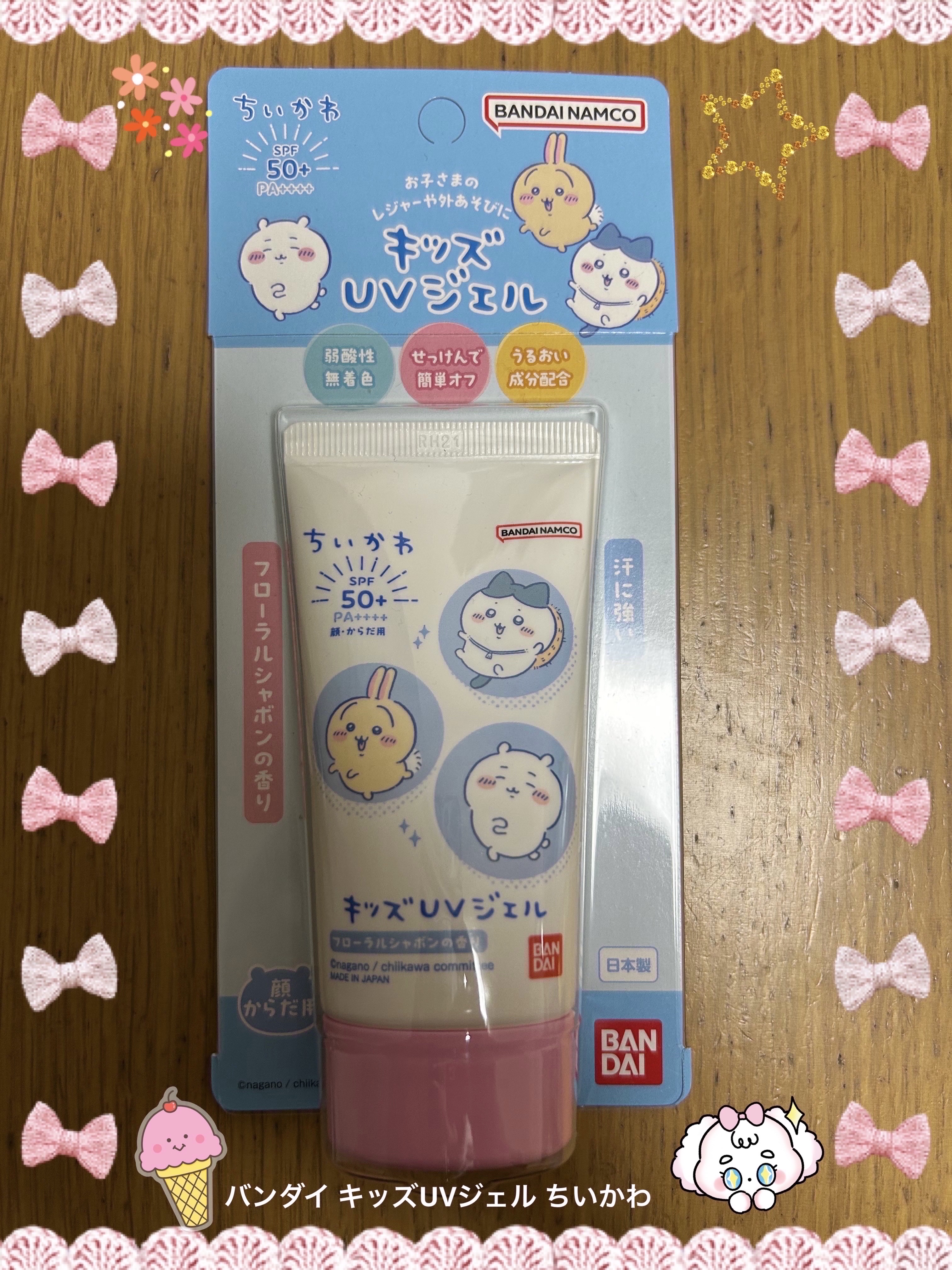 バンダイキッズUVジェルちいかわ🤍お肌にやさしい🤍・デリケートなお子さまのお肌に・うるおい成分配合でお肌しっとり🩵せっけんでおとせてラクラク🩵・専用のクレンジングは不要!・汗に強いのにせっけんやボディソープでラクラク落とせる・顔&からだ用・弱...
