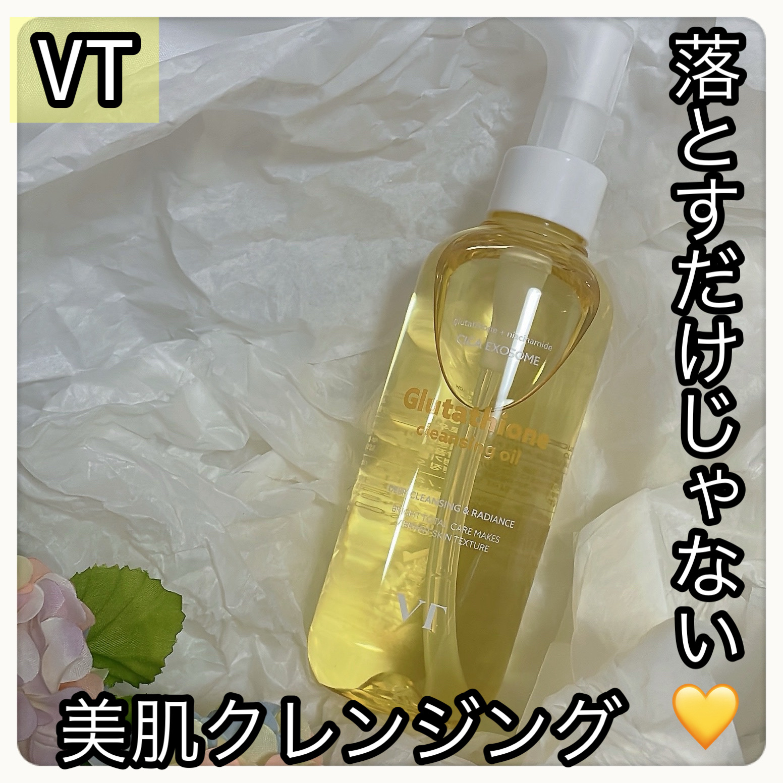 - 美肌サポートといえば、高純度98%グルタチオン*1とナイアシンアミド*1! 肌悩み・気分に合わせて使うデイリーディープクレンジング! 乾燥くすみが気になる肌をオイルで透明感溢れる明るい肌印象にケアするVT GLUTATHIONE! 19種の植物性オイル配合でイチゴ鼻*2もしっかりケア。 VTのクレンジングオイルは水みたいに軽く、乳化も早い! また「癒しの空間を演出するアロマ」の香り付きでリラックス感のあるシャワータイムに。 *1保湿成分 *2古い角質や角栓の蓄積による ■このような方へおすすめ メイク・毛穴までディープクレンジング求める方 クレンジングでスキンケアまで行いたい方 ツッパリ感の少ないクレンジングを探していた方 クレンジングで汚れをスッキリ落として透明感ケアも行いたい方 ■使い方 本品適量を取り、水気のない状態で顔に広げ、マッサージするように優しくなじませます。 その後、手に少量のぬるま湯をつけ、30秒ほど乳化させた後、十分にすすぎます。