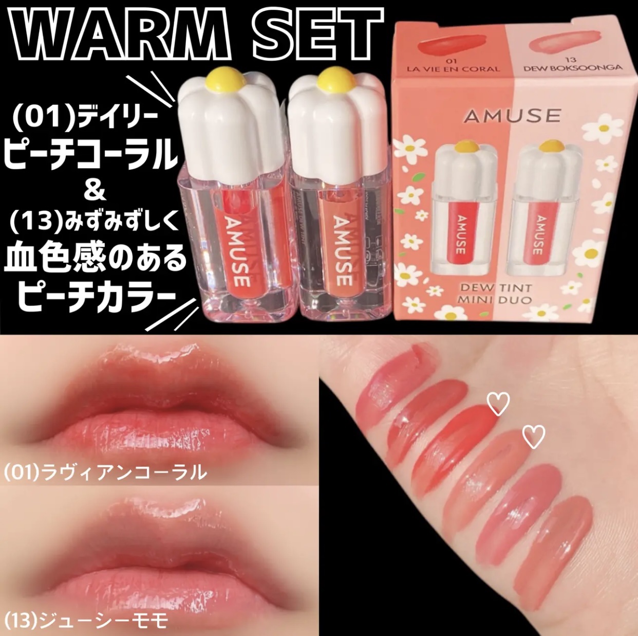 #PRAMUSEミニティントデュオセットデューティントWARMSET✔01ラヴィアンコーラルデイリーピーチコーラル✔13ジューシーモモみずみずしく血色感のあるピーチカラーCOOLSET✔08パープルクォーツ透けるようになじむピンクモーヴ✔12...