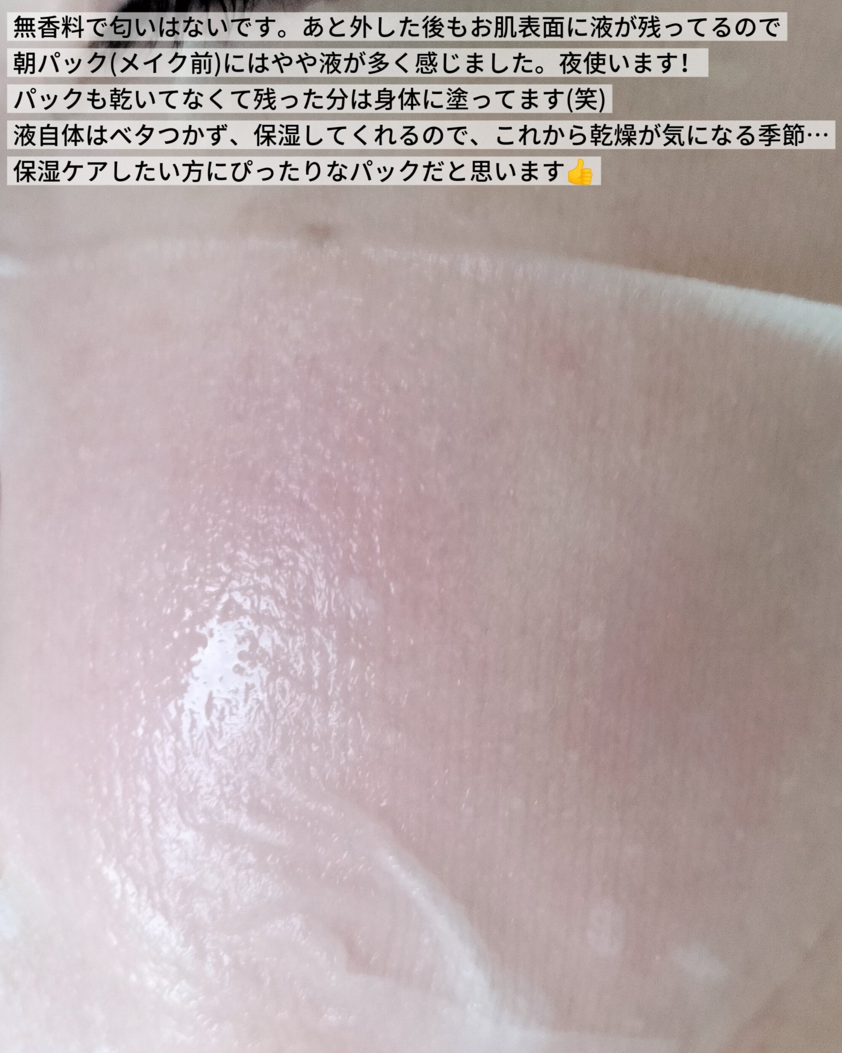 | 柔らかくなめらかなシート⭐︎ 美容液たっぷりで、ピタッと密着!しっかりと保湿してくれてしっとりするのにベタつかない👏🏻 | 詳細を見る | |