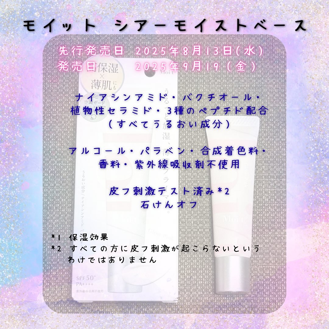 ELIZABETHさまからいただきました。୨୧𓏸𓈒𓏸𓈒୨୧ モイットシアーモイストベースSPF50+ PA++++ 紫外線吸収剤不使用|せっけんオフ ୨୧𓏸𓈒𓏸𓈒୨୧ SNSで注目されつつある、ベースメイクを選ぶ際の新たな指...