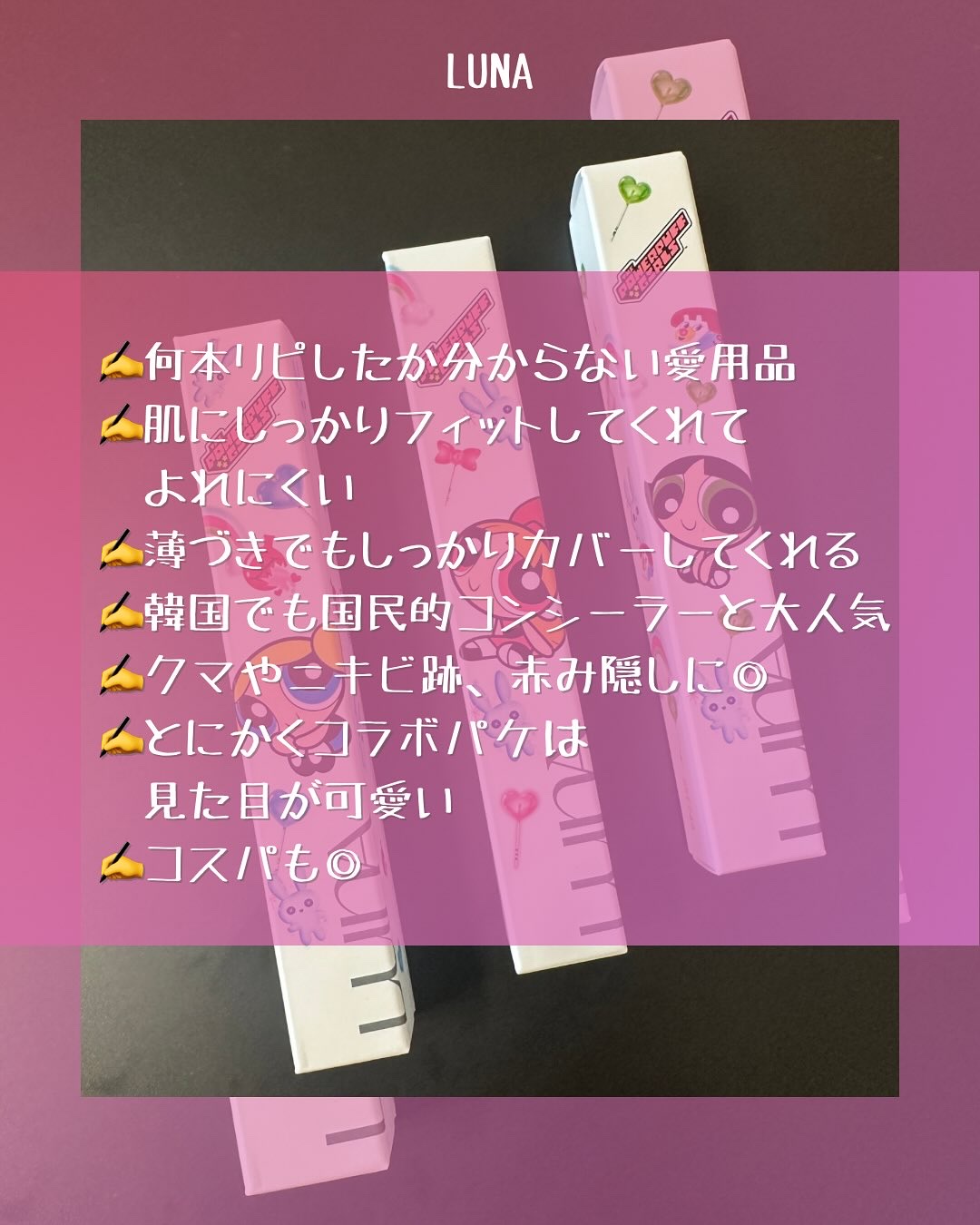 [PR:LUNA]LUNAロングラスティングコンシーラーパワーパフガールズコラボPLAZA限定✨数量限定🙌遊び心あふれる可愛いパッケージ💗見ているだけで元気もらえそう🥰カバー力の高さ◎密着感があってしっとりした使い心地限定だからぜひゲットして...