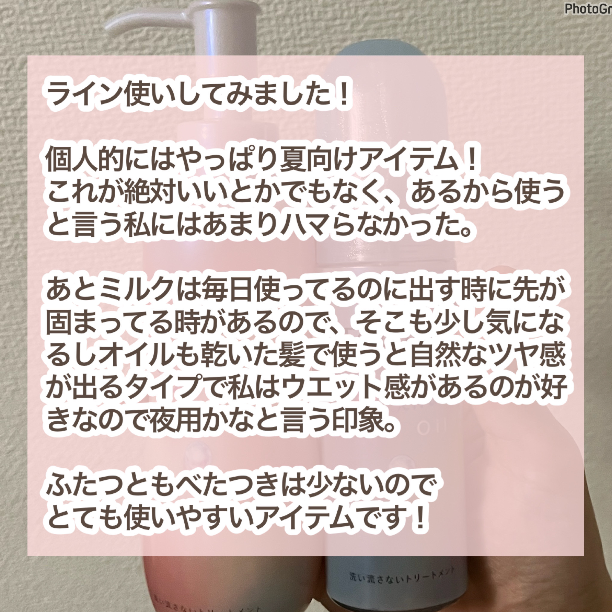| ヘアケア・スタイリングランキング第101位 | とろみはあるけどオイル特有のぬるっと感は 控えめなテクスチャー✨ | 詳細を見る | |
