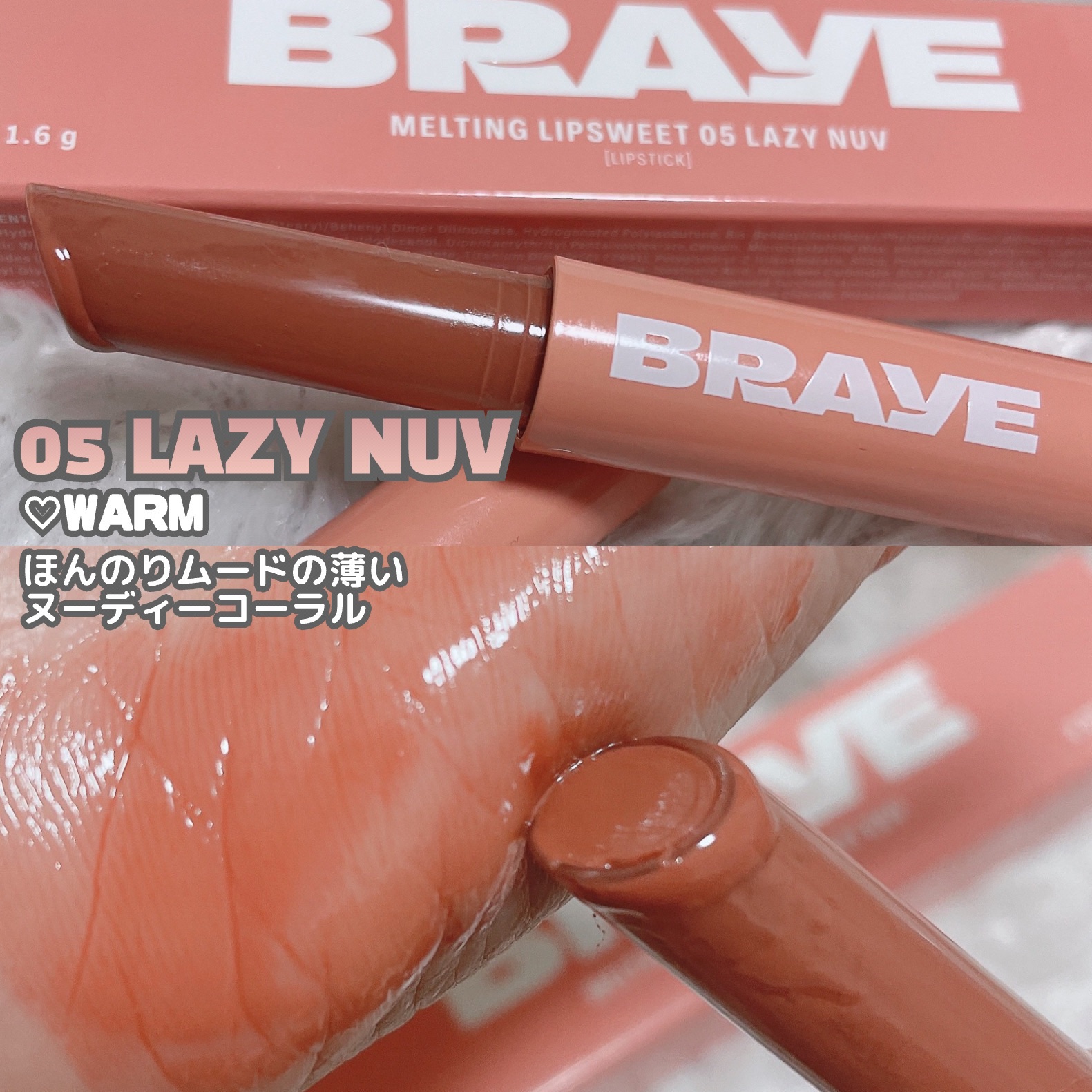 BRAYE「メルティングリップスウィート」✔️全方向ツヤリップ✔️プランピング効果で立体的な唇を演出(使用感)体温でとろけるなめらかな塗り心地。するするっと塗れます。まるでガラス玉みたいにつやつやぷるんとした唇に。使ったカラーはイエベ向けカラ...