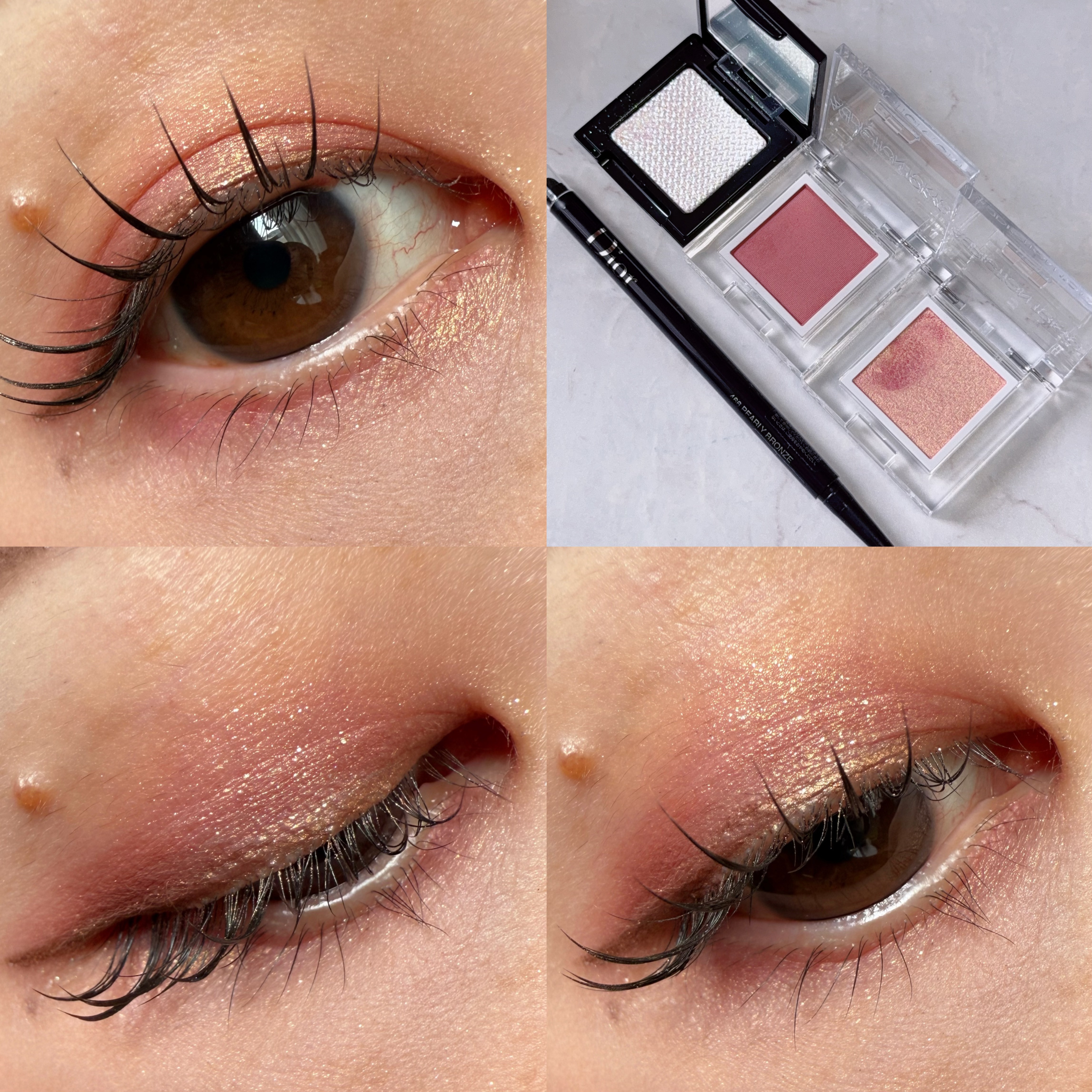 マットは今回購入して無いので粉質は分かりませんが、シマー、パール系はしっとり艶々、グリッターはベース色薄めの細かいラメでラメ飛びも気にならず🙆♀️ ブラシよりもチップもしくは指塗りでボカしにブラシを使うのがオススメです💡 Qoo10やAmazonでも販売されてるけど、公式サイトが1番送料が安かったです💫