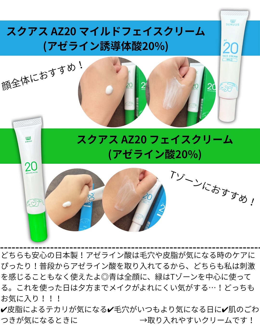SUKUUSさまからいただきました💗..純アゼライン酸20%クリームは皮脂が出やすい部分にスポットケアできるクリームです。濃厚なこっくりテクスチャーで肌にのせると良く伸びなじませやすかった◎夏のメイク前の仕込みとして使用するのもおすすめです❤...
