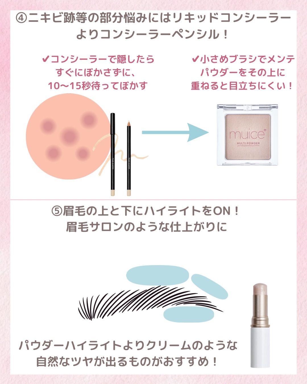 .気になる投稿は後から見返せるように【保存】してね𖤣𖥧𖥣𖡡𖥧𖤣【初心者さん必見!メイクの順番✨】これでバッチリ💡①ベースメイク②眉メイク③アイメイク④リップメイク⑤チーク&ハイライトメイクの順番とポイントをまとめてみたよ!載せてる商品はわたし...