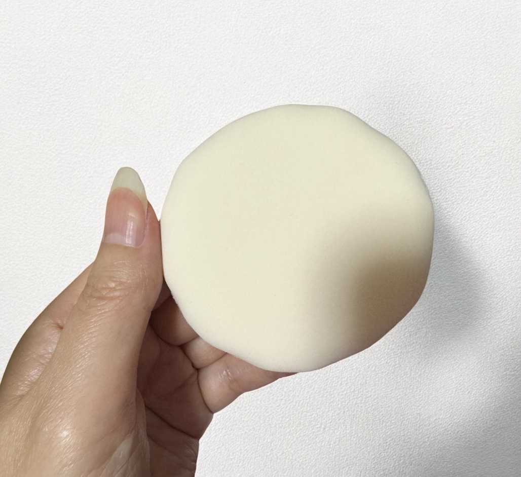 人間工学に基づいて設計された柄が指にフィットして持ちやすい! 先細りでピンポイントに乗せられるから、涙袋に重宝してる♡ ムラなく密着してとてもキレイな仕上がりに。 マシュマロみたいなふかふかのやさしい肌あたりが気持ちいい♡ 手のひらサイズくらいの大判!もちもちでスポンジのような素材。 ミストだけじゃなくてパウダーにも使えるから、私はメイクの仕上げにフェイスパウダーを抑えるのに使ってる。