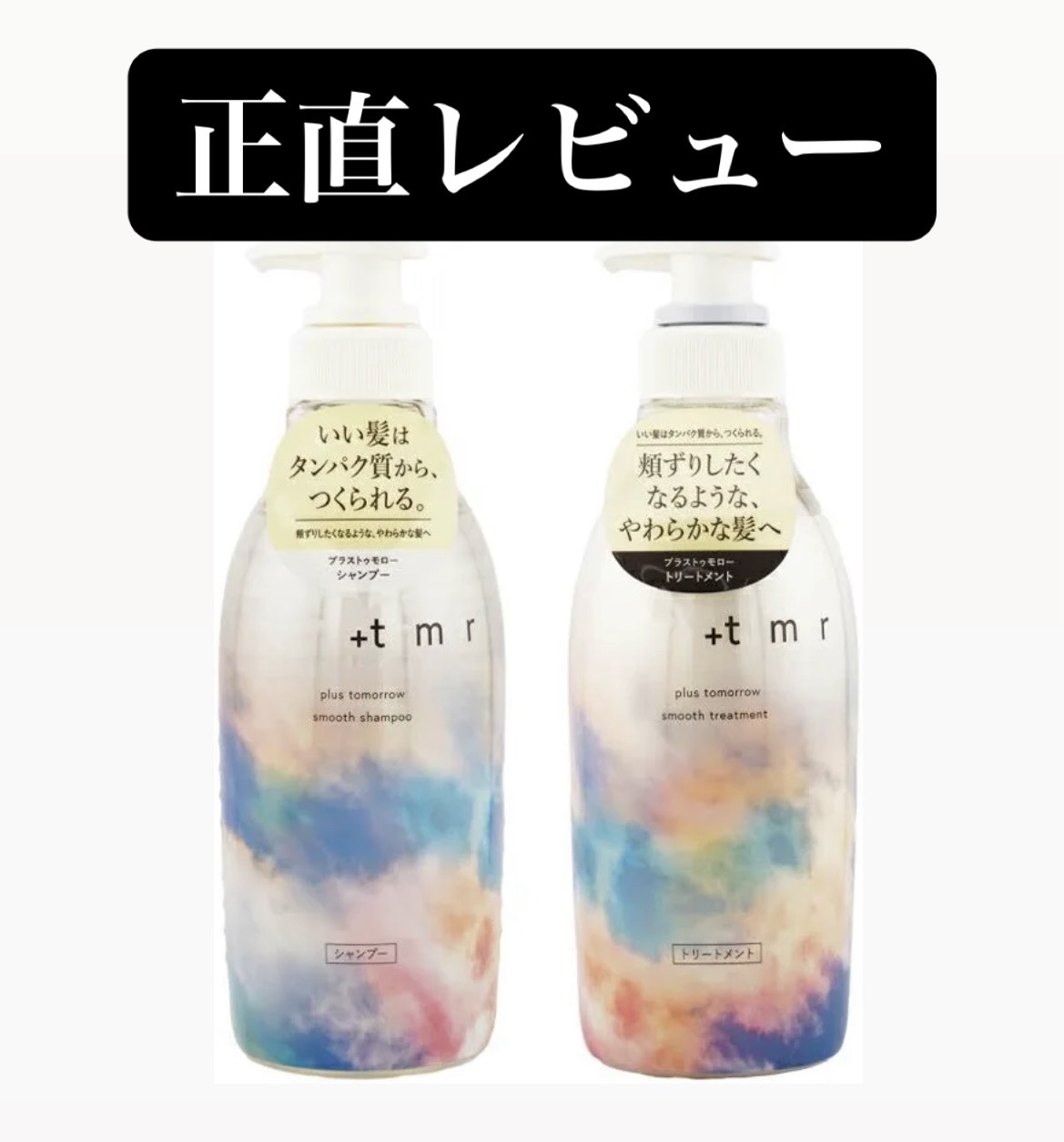- 髪とタンパク質の関係に着目した「ネイチャープロテインCP処方※2」毛髪ダメージを補修し、髪本来がもっているしなやかさを引き出します 処方アプローチ: しなやかな「頬ずりしたくなる髪」へと導くタンパク質全方位アプローチ※4 ♦ダメージを受けた髪の「空洞化」にも着目。 ダメージホールさえも、タンパク質のもととなるアミノ酸で補修し、成分を抱え込める状態へ。 ➢ ダメージを受けた髪は、スポンジのように毛髪内部が空洞化。髪に元々蓄えられている成分が流失しダメージホールが発生します。また、穴があいた状態ではいくら内部を満たすかのように成分補給をしても、ため込むことができず流れ出る状態に陥ります。 +tmrはタンパク質の元となるアミノ酸(アルギニン)でダメージホールを補修。成分を抱え込み、髪をみっちりとした状態へと導きます。 ♦髪とタンパク質の関係に着目した「ネイチャープロテインCP処方※2」 パール由来タンパク質成分を含む+tmrの独自処方「ネイチャープロテインCP処方」により、毛幹、および髪の85%~90%を占めるコルテックスへとアプローチ。髪のダメージを補修します。 ➢髪のしなやかさを司る毛髪タンパク質の最小単位。その直径はマイクロスコープでも確認することができない、わずか1.2nm、ダメージを受けることでバネ状が伸び縦方向への引っ張りにも影響、切れ毛の原因の一つにもなります。ミクロレベルで髪を補修し、ダメージにより失われた髪の弾性を健やかな状態へと導きます。 ➢カラーやパーマによりダメージを受けた髪は、コルテックス内部のタンパク質などの成分を留めるための結合がもろくなり、成分を抱え込めない状態に。縦横無尽に張り巡らされた毛髪内結合の強化をサポートし、髪が切れにくい状態へ。 香調: +tmrのこだわりは心まで満たされるかのようなフレッシュフローラルの香り ♦「頬ずりしたくなるほど、やわらかな髪」に気持ちまで弾むような香りにこだわりました。すがすがしく晴れた空、穏やかな空気、そんな心弾むひと時をイメージしたフレッシュフローラルの香りです。 パッケージデザイン: 見ただけで心が弾む、空に浮かぶ彩雲(さいうん)をイメージ ♦+tmrと一緒なら、今日が、明日がもっといい日になる。そんな未来への希望が広がるデザインにサステナブルな想いを込めたパッケージデザインへと仕上げました。 環境への配慮 ♦シャンプー・トリートメントの本体ボトル※5約66%がリサイクルPETを使用 ♦詰め替え用パッケージの約44%に植物由来のプラスチック、約7%にリサイクルPETを使用 先行発売:2023年11月1日より全国の@cosme STORE / @cosme SHOPPINGにて先行発売 全国発売:2024年2月より全国順次展開 ※2 生命の源・海が育んだパールプロテイン由来成分(加水分解コンキオリン)、アミノ酸(リシンHCl)、アミノ酸由来成分(ジラウロイルグルタミン酸リシンNa )(補修)と自然の恵み・発酵のちからを生かしたスキンケア発想の保湿成分(サッカロミセス溶解質エキス、グリセリン)配合処方 ※4 ネイチャープロテインCP処方と、空洞化をケアする成分、タンパク質の元となるアミノ酸「アルギニン」でそれぞれアプローチすることの総称 ※5 ポンプ部分を除く