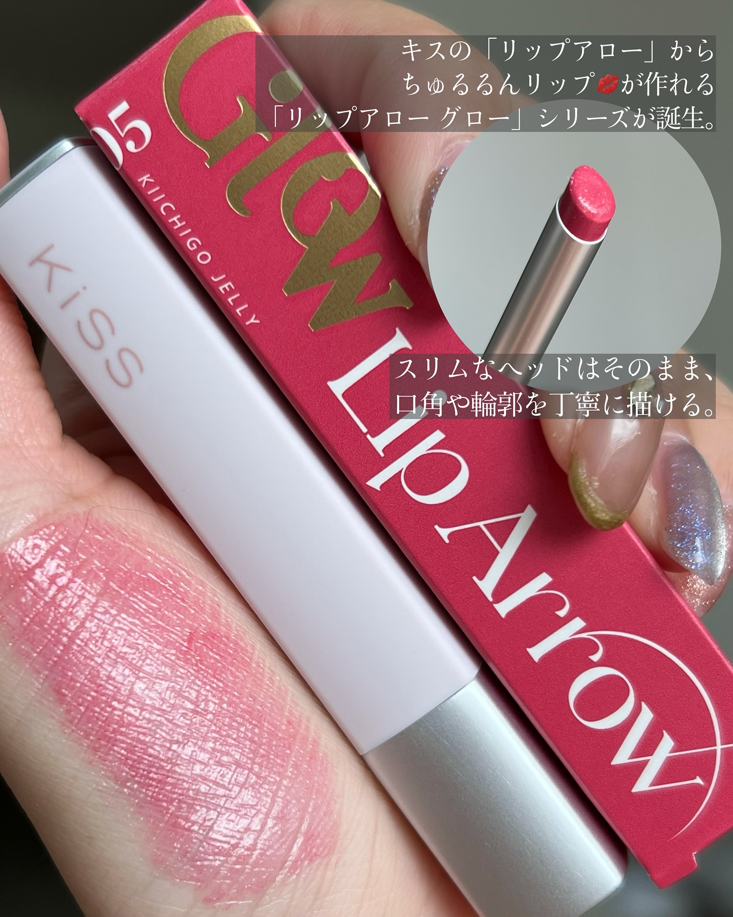 - KiSSで人気の口角まできゅっと描きやすい超極細*リップ、リップアローの新シリーズ「リップアロー グロウ」が新登場! 高保湿オイルベース処方でうるおいをキープ。 むっちりとした質感とちゅるんとしたトレンド感のある唇を叶えます。 誰にでも似合う ジュワッとした5色の粘膜カラー。 輪郭を丁寧に描ける超極細*リップでトレンドのフィルターをかけたような唇に仕上がります。 粘膜カラー×唇ケア むちゅるん!いたわリップ 高保湿オイルベース処方 ◇水分を抱え、うるおいをキープするモイストキャッチオイルと、4種(アルガンオイル・シアバター・セラミド・ハチミツ)のうるおい成分を配合。 うるおいが長持ちし、ふっくらと柔らかなぷるぷるリップに仕上げます。 唇の立体感を強調するツヤで、むっちりとしたかわいい唇を演出 ◇微細パールを配合し、立体感のあるツヤ唇を叶えます。 色ツヤをキープするフィットゲル処方 ◇キスのリップシリーズに共通した落ちにくい技術を応用。 唇に密着し、動きに合わせて伸縮、色ツヤが持続します。 輪郭を丁寧に描ける、超極細*リップ ◇口角や輪郭の曲線など、細かいところまで丁寧に描きやすいリップ。 トレンドのフィルターをかけたようなリップに仕上がります。 * キス リップ製品において 2025年8月27日(水) ロフト先行発売