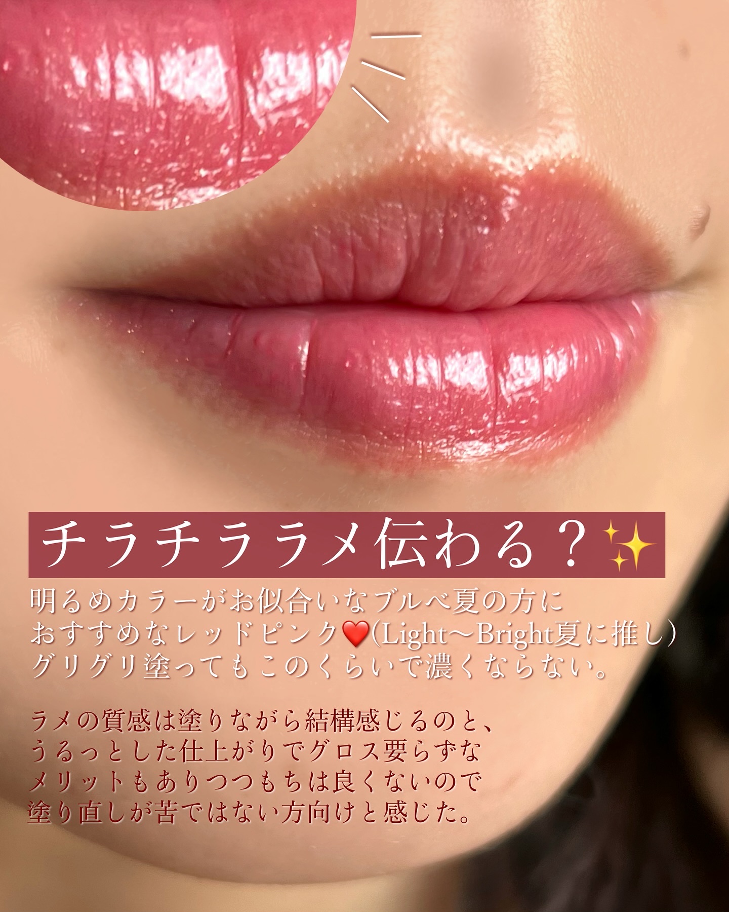 | 指で軽く触るとジェル膜を感じられますし、ツヤツヤぷるぷるのリップに仕上がります! | 詳細を見る | ||