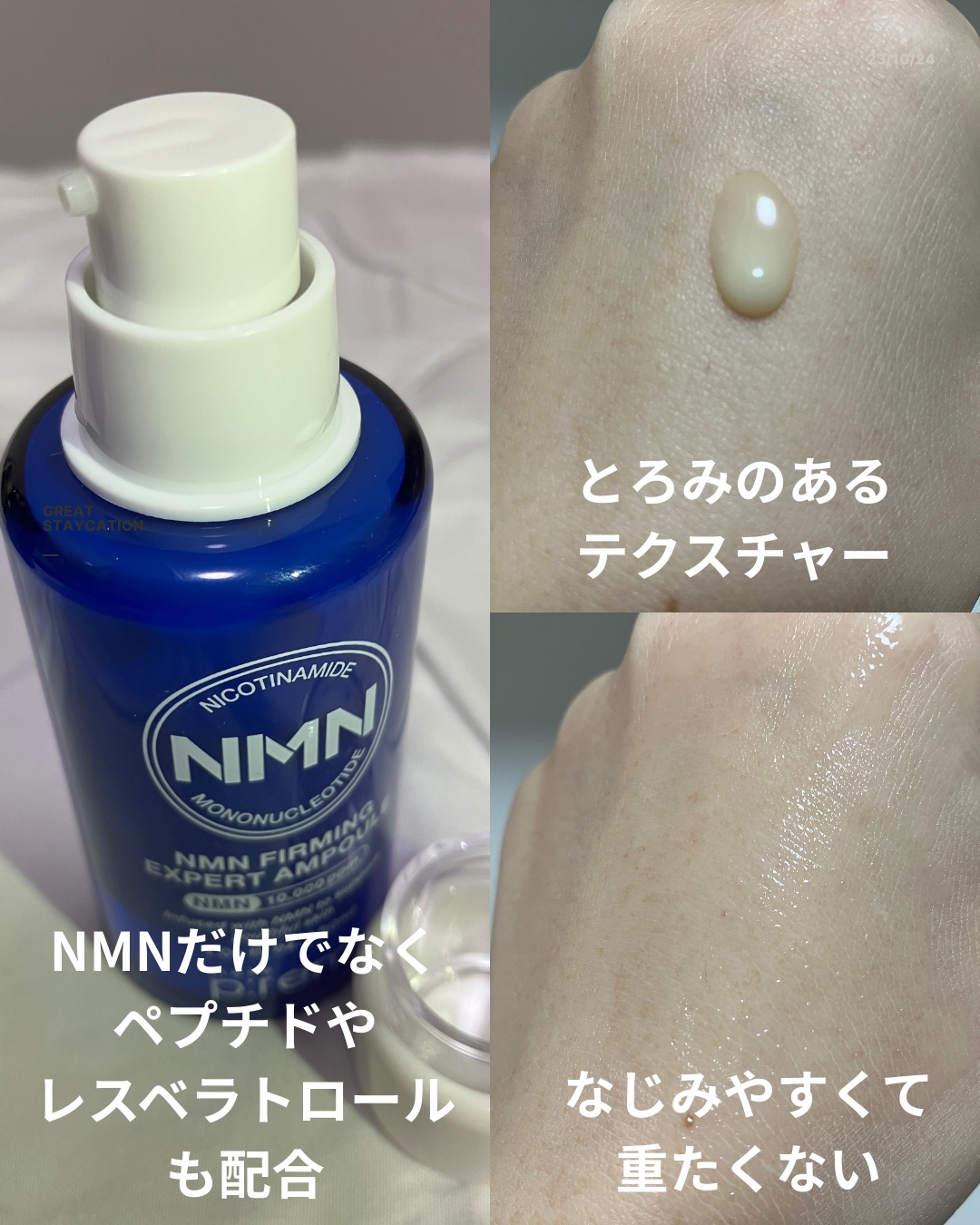 - ハリや弾力感が気になる肌に、NMN10,000ppm配合*1の美容液で次世代エイジングケア*2。 年齢肌の乾燥やハリ不足による悩みを集中ケア。 さっぱりとした使い心地で、べたつかない軽やかなテクスチャー。 濃密なうるおいで、引き締まったハリ肌へ導きます。 *1保湿成分 *2年齢に応じたお手入れ