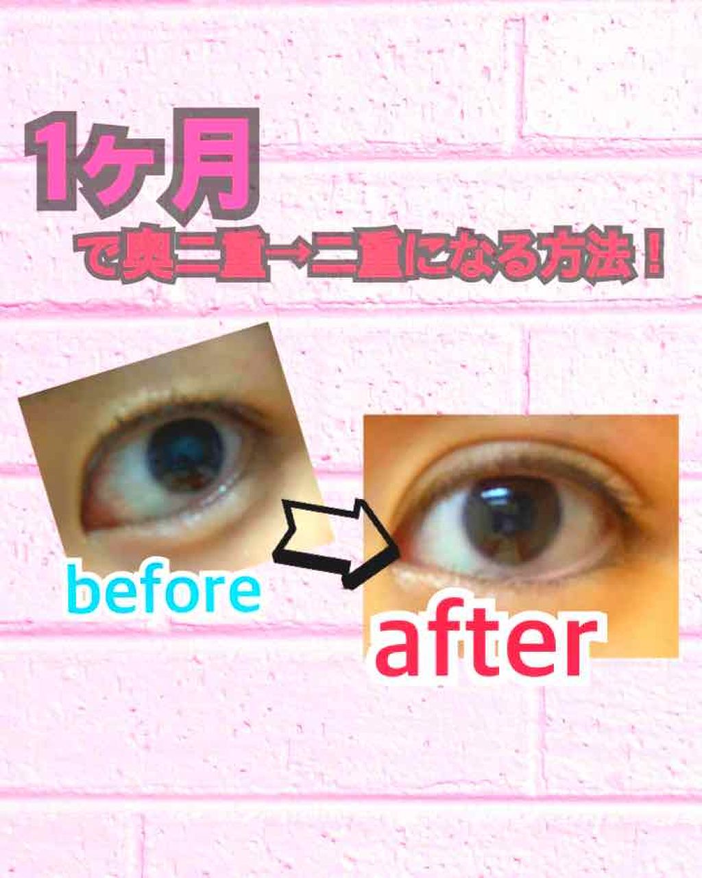 見てくださってありがとうございます!💗私が1ヶ月で奥二重→くっきり二重になった方法をお教えします!結論から言いますと、🐰夜寝る前につける(🐰できれば昼もつける)これだけです!(笑)次は補足説明です!まずわたしのコンプレックスは、右目と左目の左...