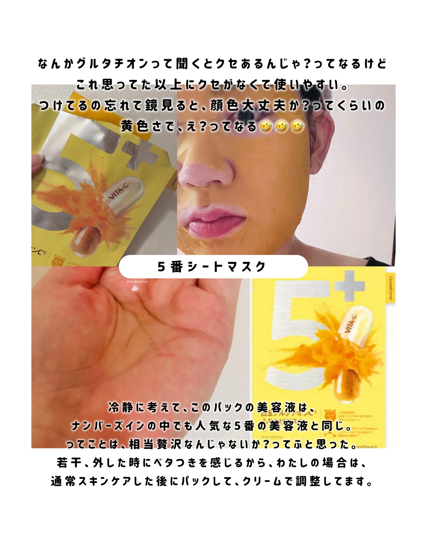 「numbuzin」さまから商品提供していただきました♡\\澄んだ明るい肌へ//*numbuzin*5番白玉グルタチオンCふりかけマスクふりかけマスクはビタミンたっぷりのオレンジのやわらかなシートにとろみたっぷりのエッセンスが心地良いで使うこ...