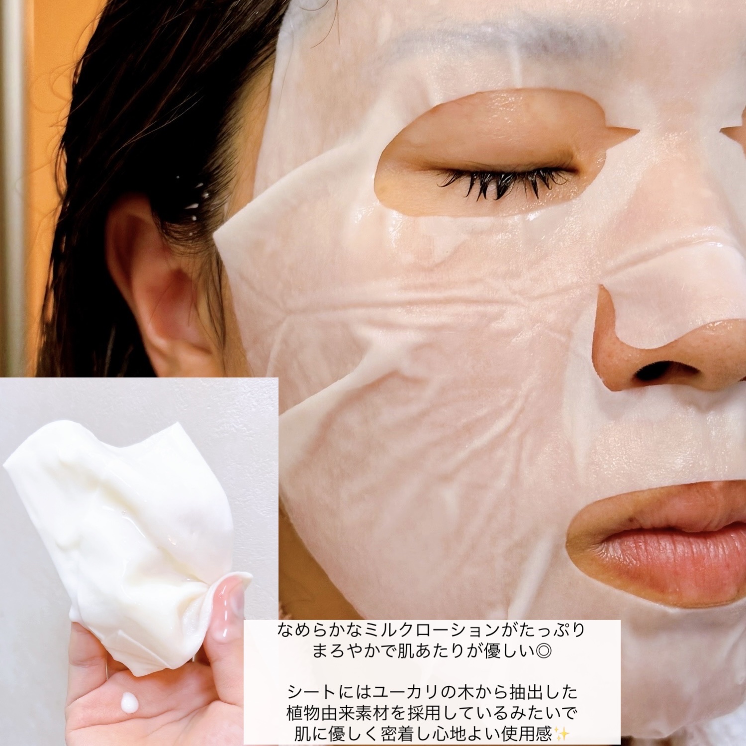 | 乳液とクリームの間のような美容液がたっぷり入った柔らかいシートマスク。外した後は肌がツヤツヤ✨ | 詳細を見る | |