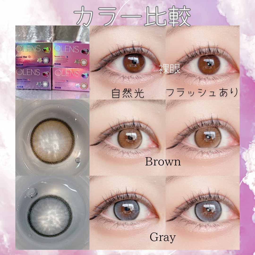 OLENS新作🩶SecretTint毎月かわいい新作が出るOLENSのカラコン。今回はきらめきが可愛い2色が登場🙌🏻🤍🫧♡.*・゚゚・*.♡SecretTintGray,Brown❍1Month(1箱2枚入り)❍DIA:14.5mm❍着色直径...