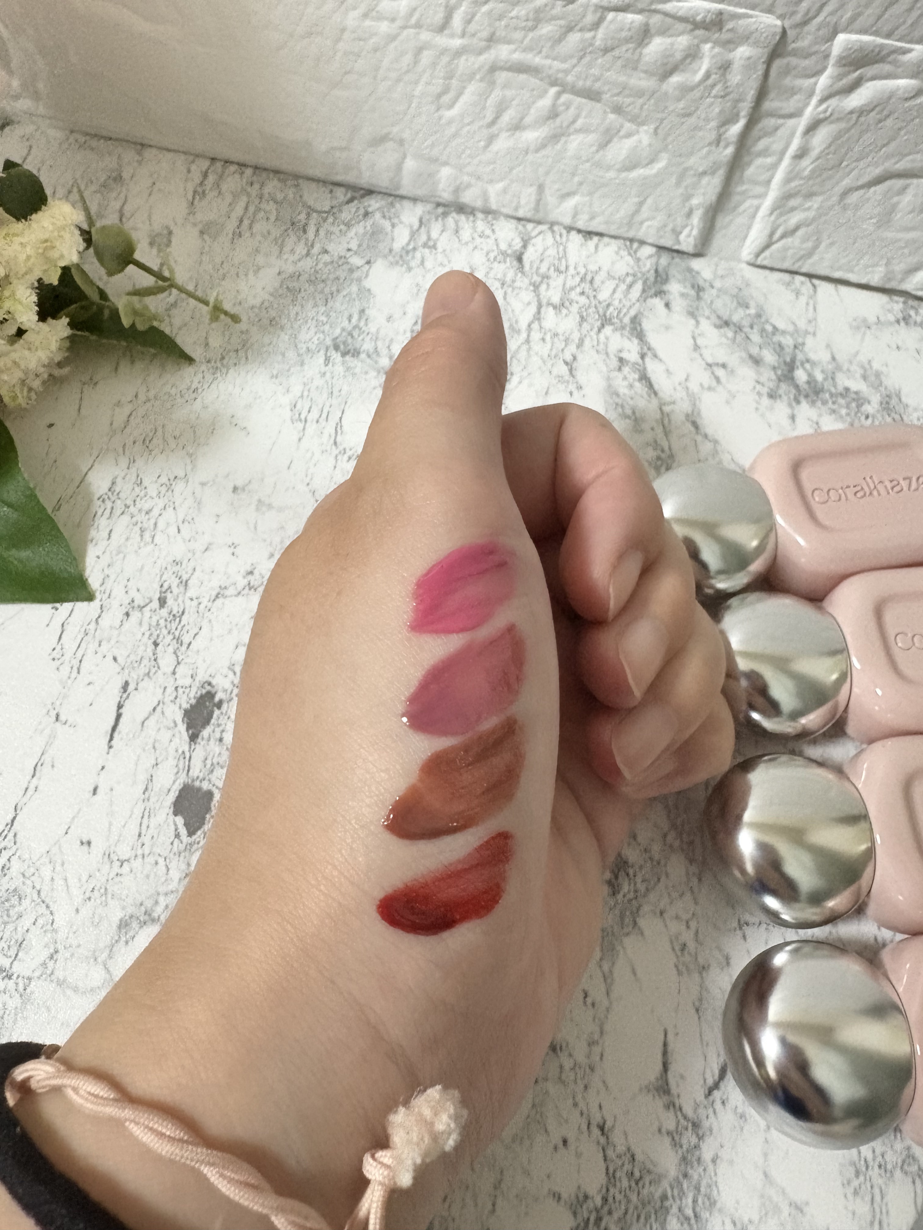 CoralhazeDewDropTint軽やかにぴたっと密着し、ガラスのような水ツヤを叶えるティント✨ベタつかず軽やかで、毎日つけたくなるケア発想リップ。全8色展開203Bubbly爽やかなクールピンク204Rareグレイッシュなクールピンク...