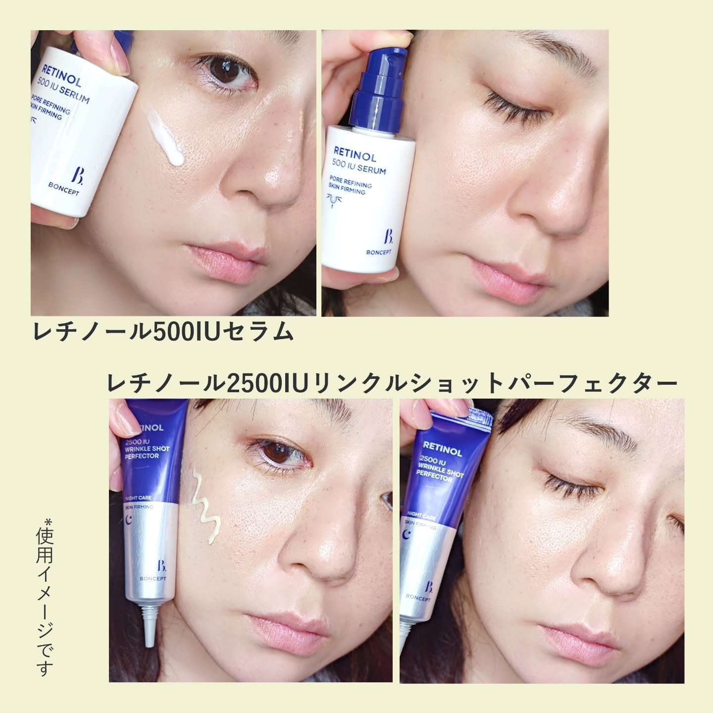 .✾BONCEPT・レチノール2500IUリンクルショットパーフェクター・レチノール500IUセラム..レチノール2500IUリンクルショットパーフェクターはシワ改善と肌のハリ向上に役立つ優れもの✨.ベタつかずに肌にフィットし弾力感と栄養感を...