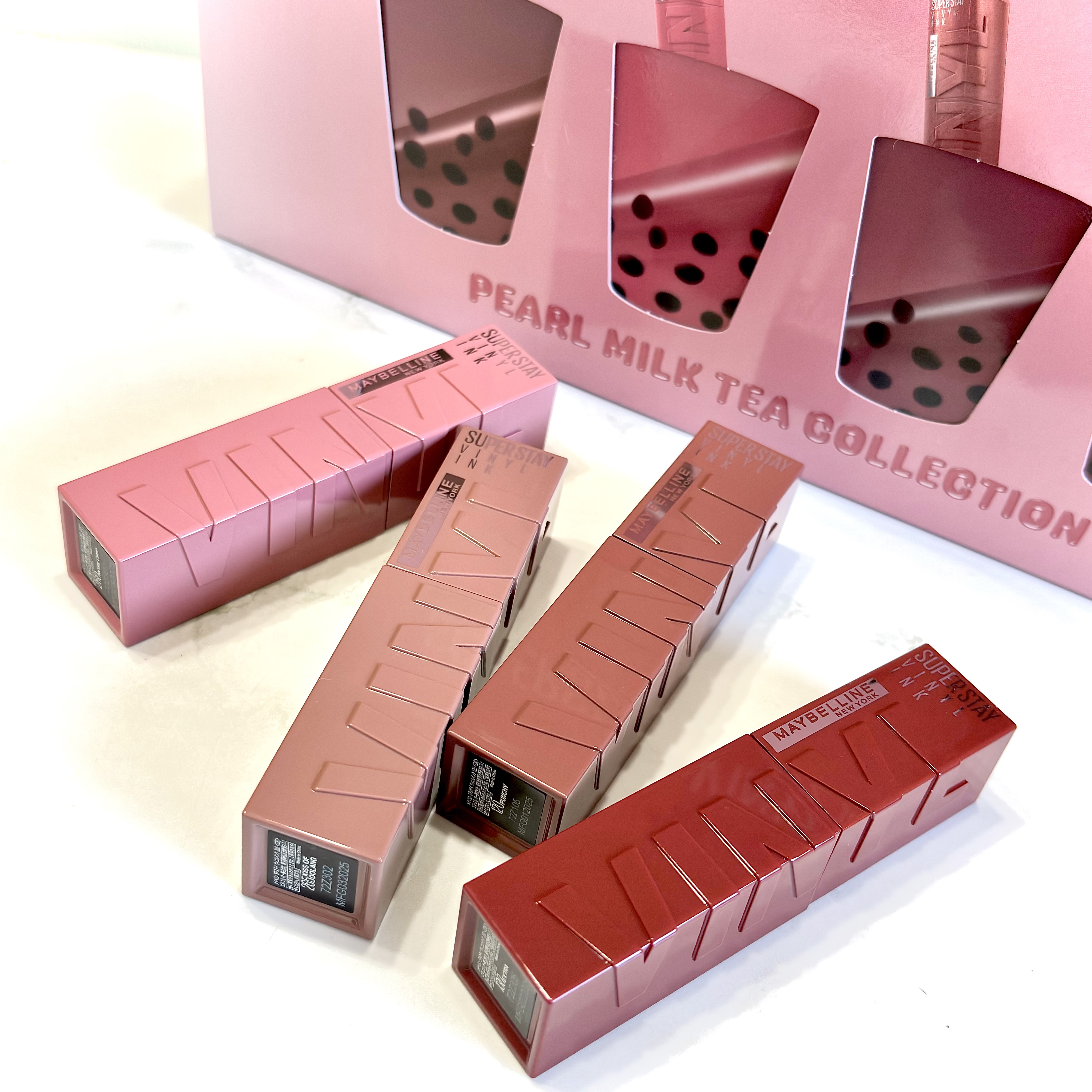 秋冬にぴったり♡落ち着いて、ビターなメイベリンのパールミルクティコレクションをスウォッチ✨️🥰MAYBELLINENEWYORKメイベリンニューヨークSPステイヴィニルインク260(甘酸っぱいストロベリーミルクティー)★限定色265(香ばしウ...