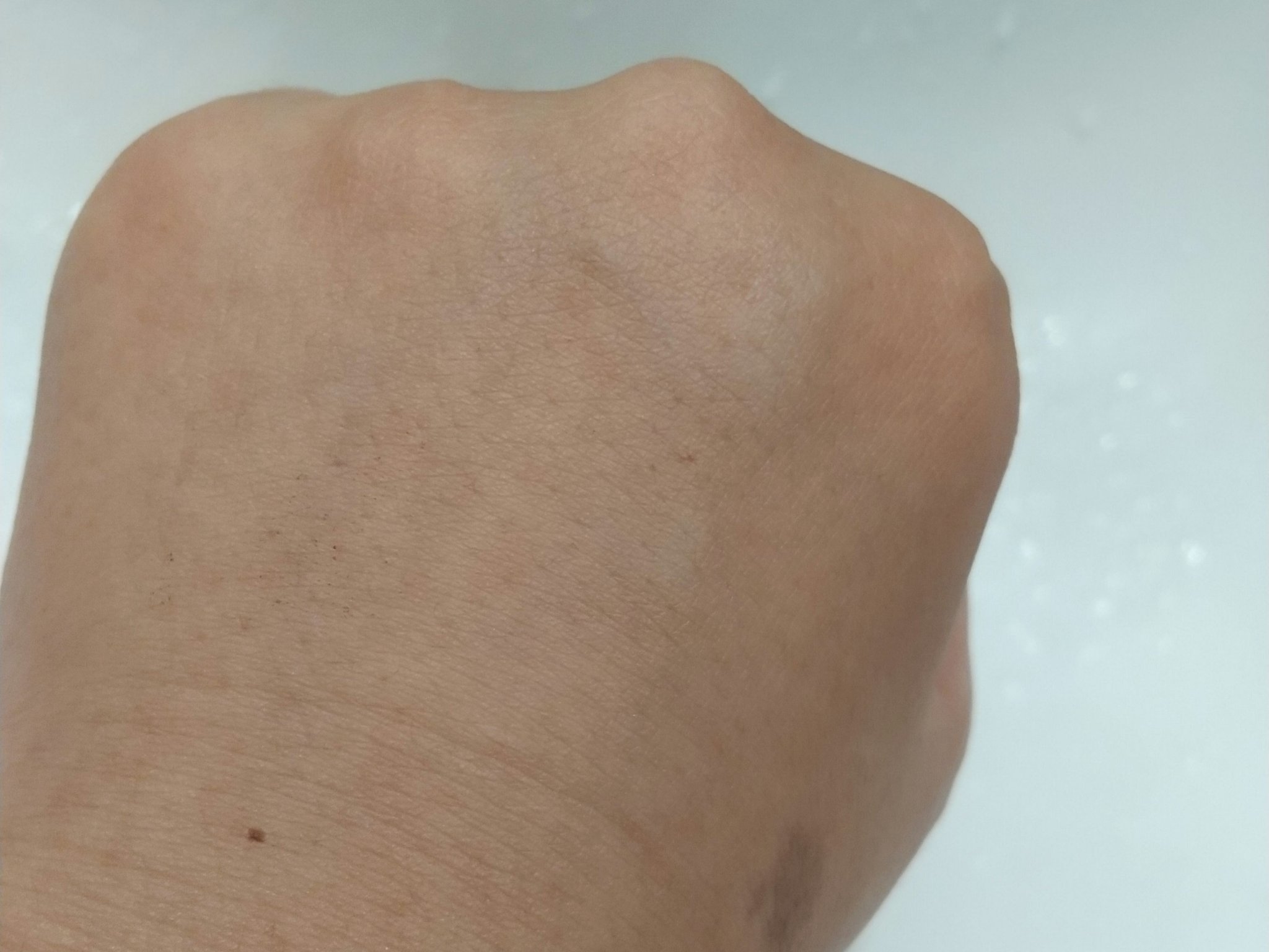 左上、左下、真ん中上、真ん中下、右上、右下という順番でスウォッチしてみました。 出してみると商品の写真より肌にのせたほうがくすみが出るかな✨という印象です😌 伸ばしやすくて指でも筆でもつけやすいです☺️💕 とっても可愛いカラーなのでオススメです💠