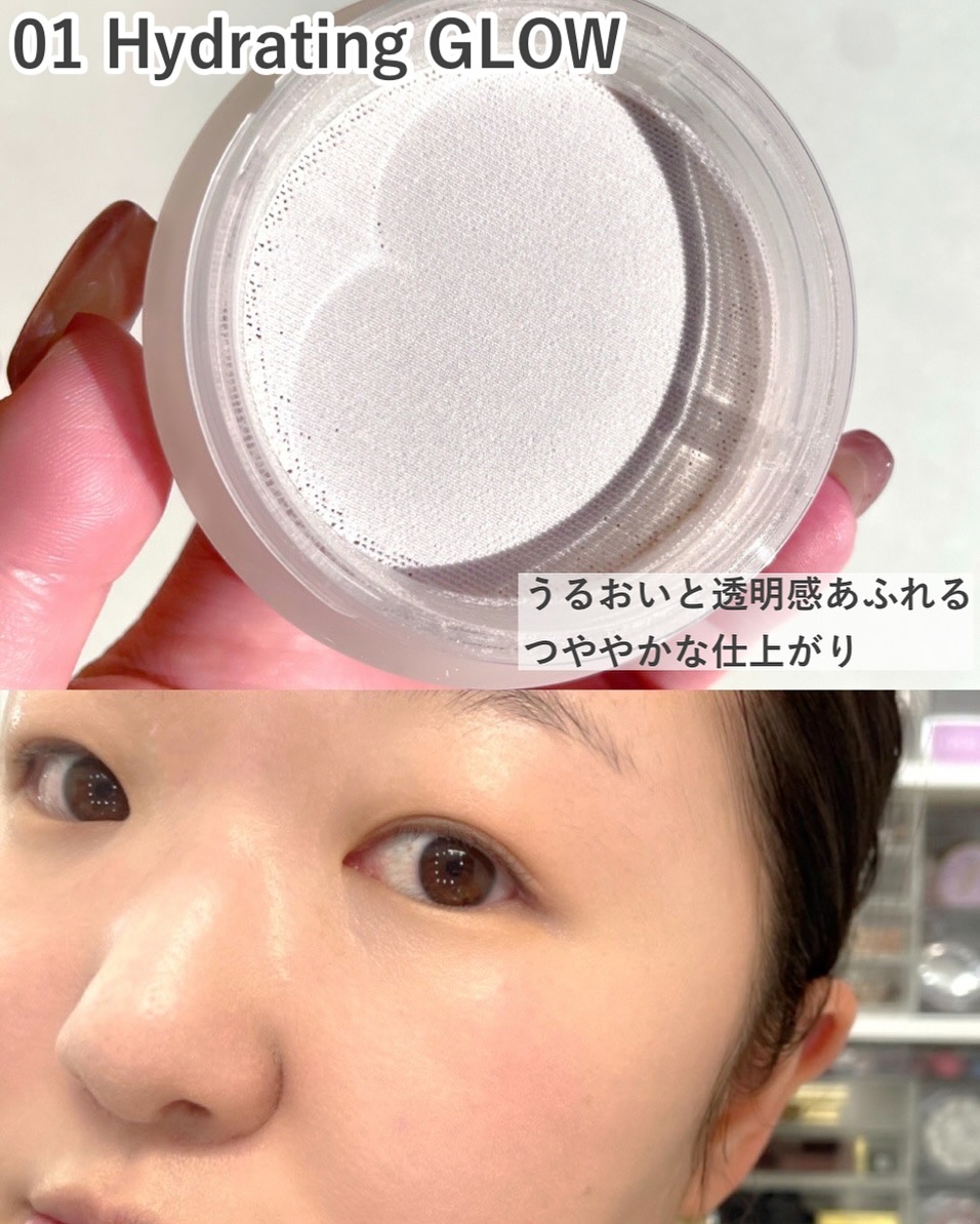 - <01 Hydrating GLOW> ホウケイ酸(Ca/Al)、シリカ、グリセリン、窒化ホウ素、ジメチコン、ナイアシンアミド、ジラウラミドグルタミドリシンNa、ワイルドタイムエキス、アセチルヒアルロン酸Na、塩化Mg、ジステアリルジモニウムクロリド、酸化亜鉛、イソプロパノール、水、BG、ステアリン酸、水酸化Al、酸化スズ、フェノキシエタノール、クロルフェネシン、合成金雲母、マイカ、酸化チタン、酸化鉄 <02 Smoothing MATTE> シリカ、グリセリン、ジメチコン、ナイアシンアミド、ジラウラミドグルタミドリシンNa、ワイルドタイムエキス、アセチルヒアルロン酸Na、塩化Mg、ジステアリルジモニウムクロリド、酸化亜鉛、イソプロパノール、水、BG、ステアリン酸、水酸化Al、酸化スズ、フェノキシエタノール、クロルフェネシン、合成金雲母、マイカ、酸化鉄、酸化チタン <03 Pink Hydrating GLOW> ホウケイ酸(Ca/Al)、シリカ、グリセリン、窒化ホウ素、ジメチコン、ナイアシンアミド、ミリスチン酸亜鉛、ワイルドタイムエキス、アセチルヒアルロン酸Na、ジステアリルジモニウムクロリド、酸化亜鉛、イソプロパノール、水、BG、酸化スズ、ステアリン酸、水酸化Al、フェノキシエタノール、クロルフェネシン、合成金雲母、マイカ、酸化チタン、グンジョウ、赤226