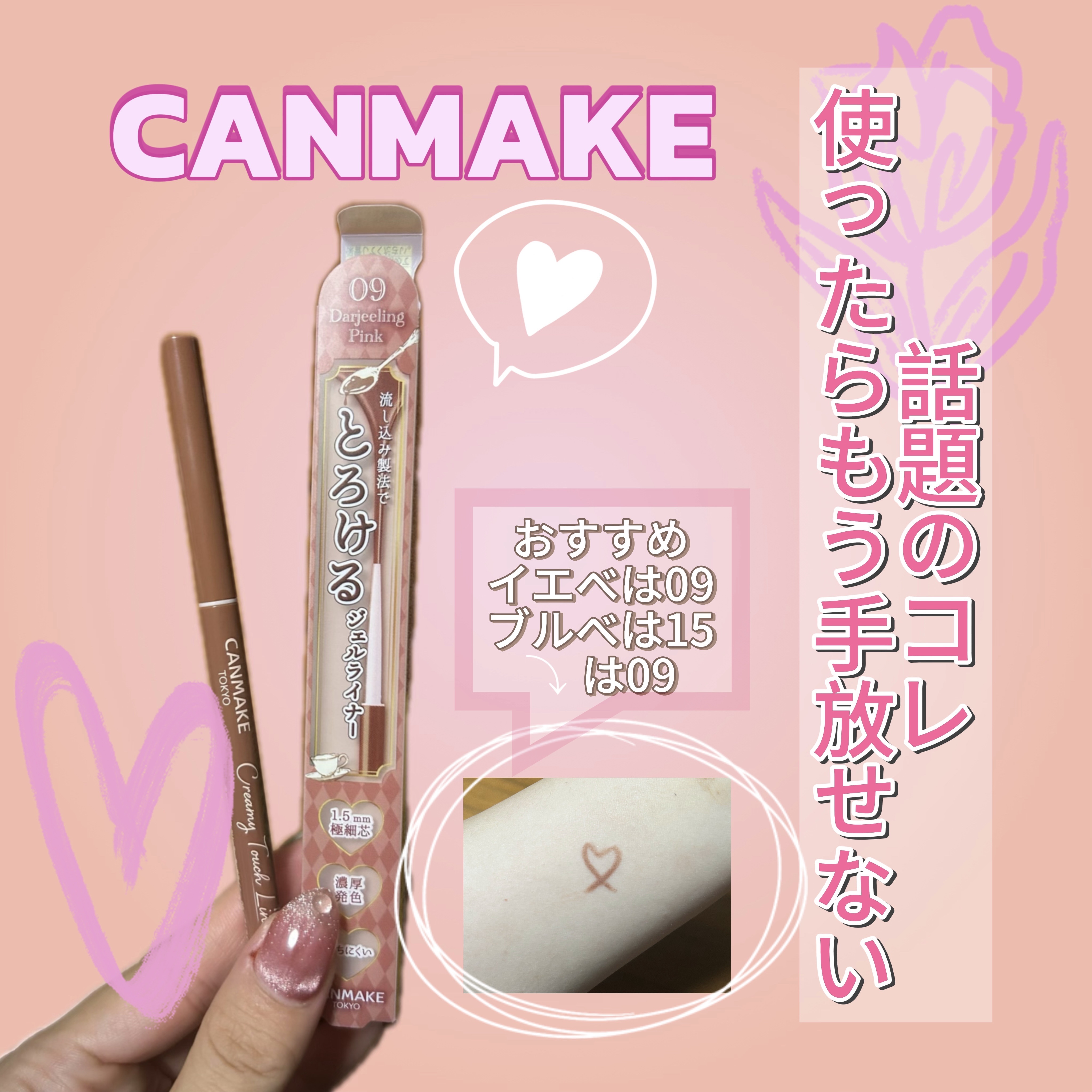 \地雷ライン鬼盛れ👹/今回紹介するのはキャンメイククリーミータッチライナー09ダージリンピンク¥715です。温かみのあるピンクブラウンが肌馴染み良く、粘膜地雷ラインに向きます。暖色なのでイエベさんは目尻に引いても可愛いと思う😍SNSでバズり散...
