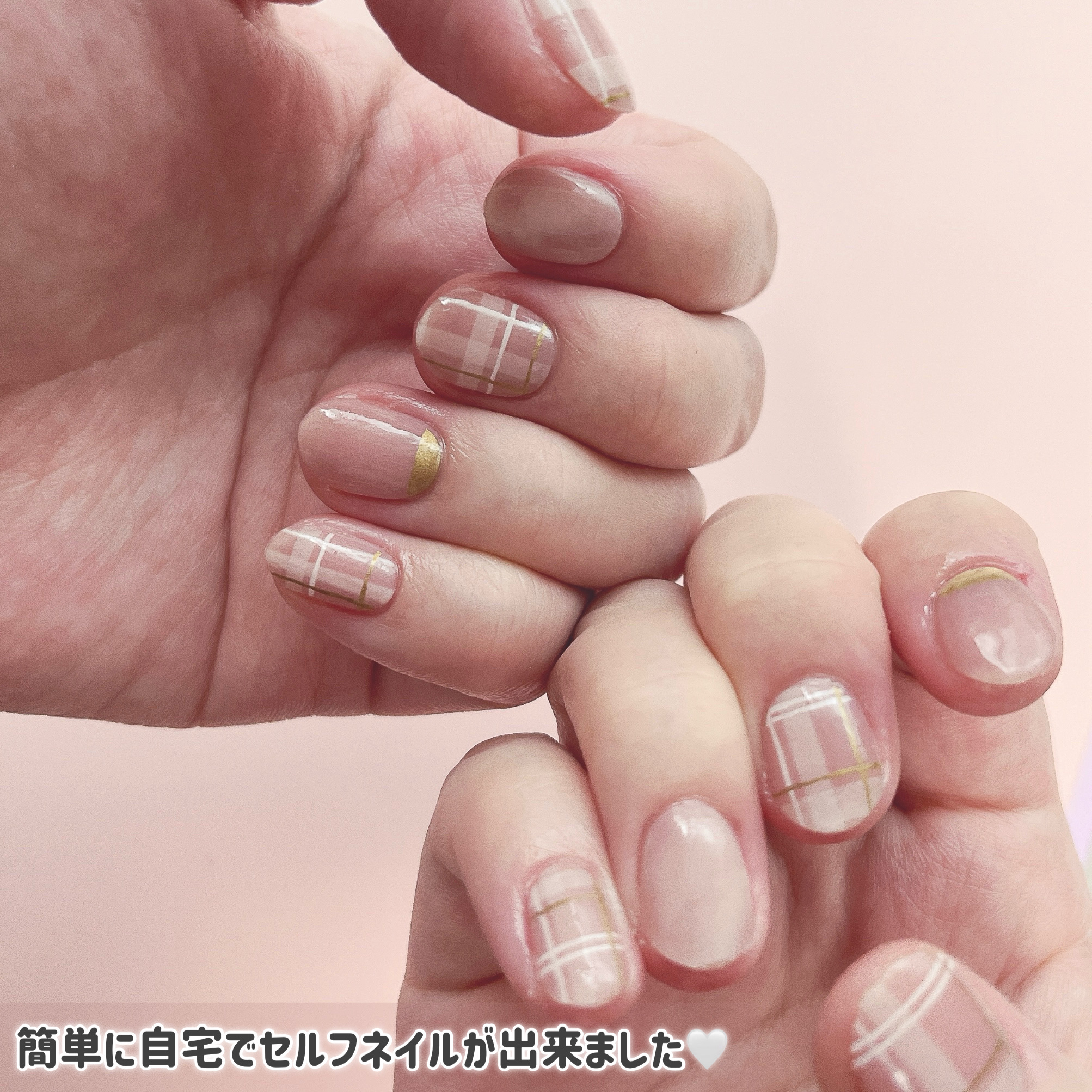 ■ohoraohoraネイルシールサロン級の仕上がりが貼って固めるだけで完成✨種類がたくさんあって、秋ネイルにもぴったり🍂・ND-049JNCoyCheckスモーキーなピンクがベースになった落ち着いた印象をつくる大人のチェックネイル・NB-0...