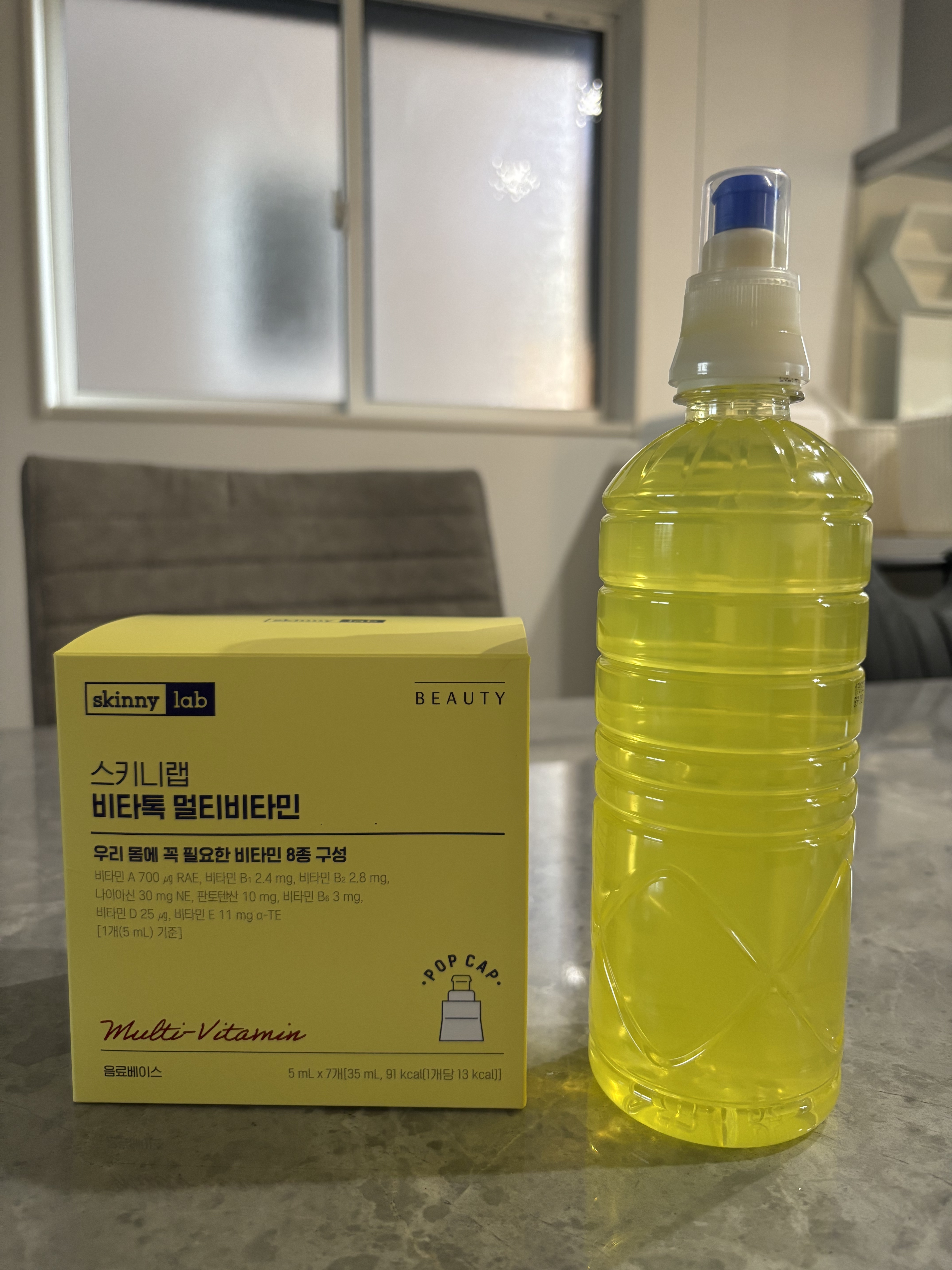 SNSで話題のK-ビタミンウォーターついに日本上陸🚢スキニーラボビタトックマルチビタミンを試してみたよ💛💛💛結合キャップにビタミンが内蔵されており、500ml以下のペットボトルならどのサイズにも取り付けられる⭕️1日1キャップで主要な8種類の...