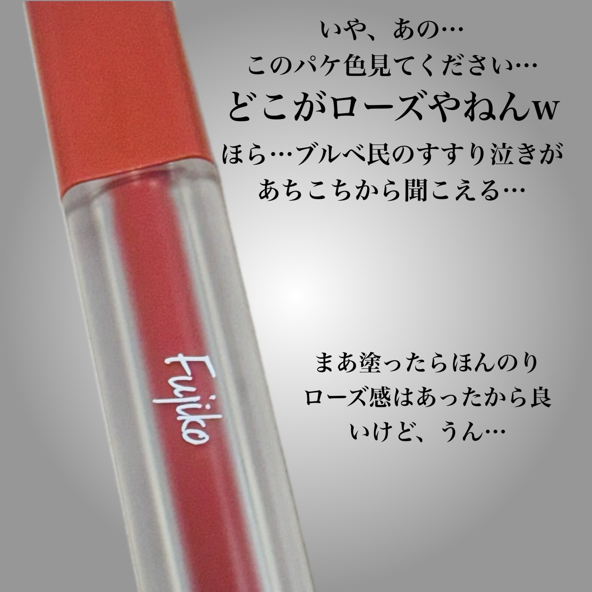 結構前に買ってたリップ💦✔️Fujikoなりすましティント02私のローズ気になってて、テスターの使用感も良さそうだったので購入マットって苦手だけど、これは使用感大丈夫だった気になりポイントがあって、まずカラバリが3色のみな事、他のカラーはわか...