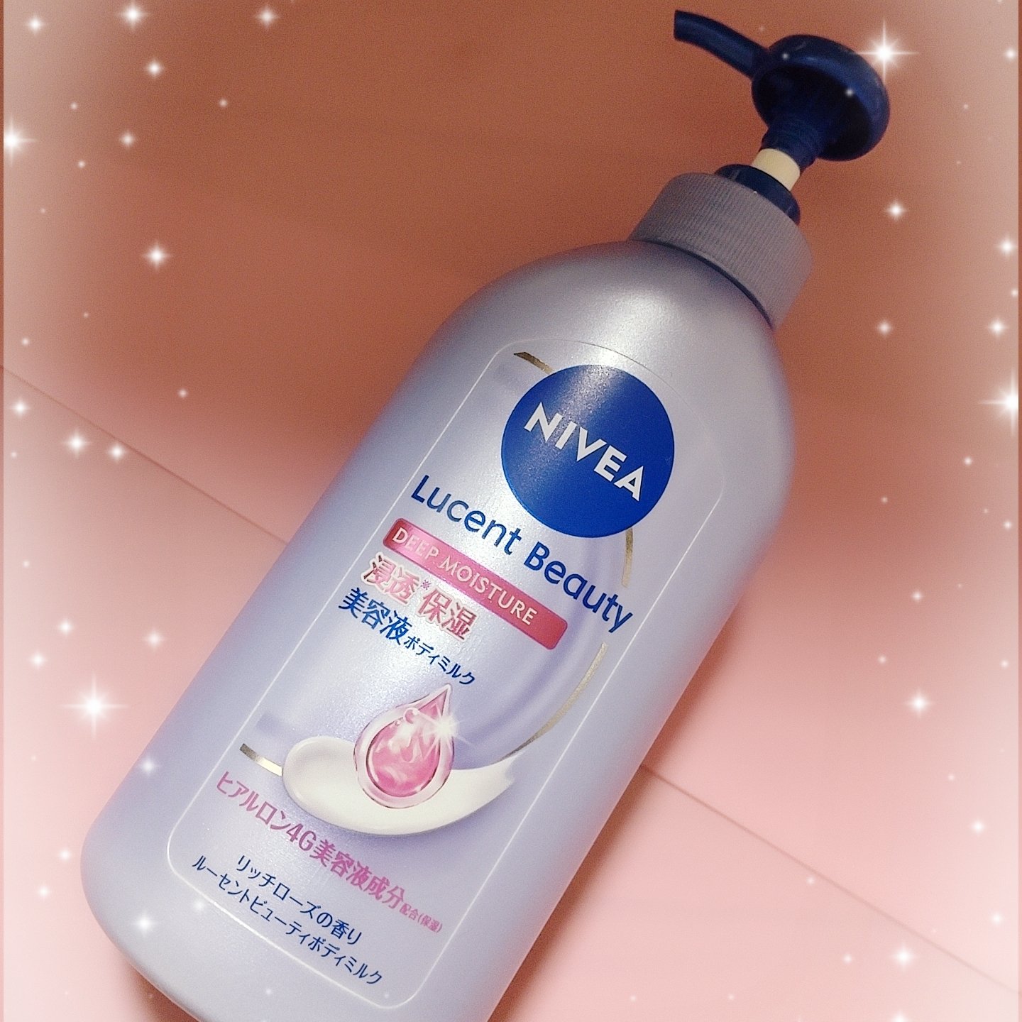 - うるおって透明感あふれる美肌へ導く、高保湿美容液ボディミルクシリーズ。 ニベアが考えるボディの美肌の鍵「キメ・つや・なめらかさ」にアプローチ。 うるおいに満ちて透明感のある肌に導く。ヒアルロン4G美容液成分※1 配合(保湿) キメが整ってなめらかで艶やかなうるおい透明美肌に。美容液ミルクが角層深部に浸透し、うるおいが長続き。 浸透ヒアルロン成分配合:浸透型※2ヒアルロン酸※3、グリセリン(すべて保湿) 気分満たされる、華やかで上質なリッチローズの香り ※1 ヒアルロン酸Na、グリセリン、グリコーゲン、グリセリルグルコシド、グルコサミン ※2 角層まで ※3 加水分解ヒアルロン酸