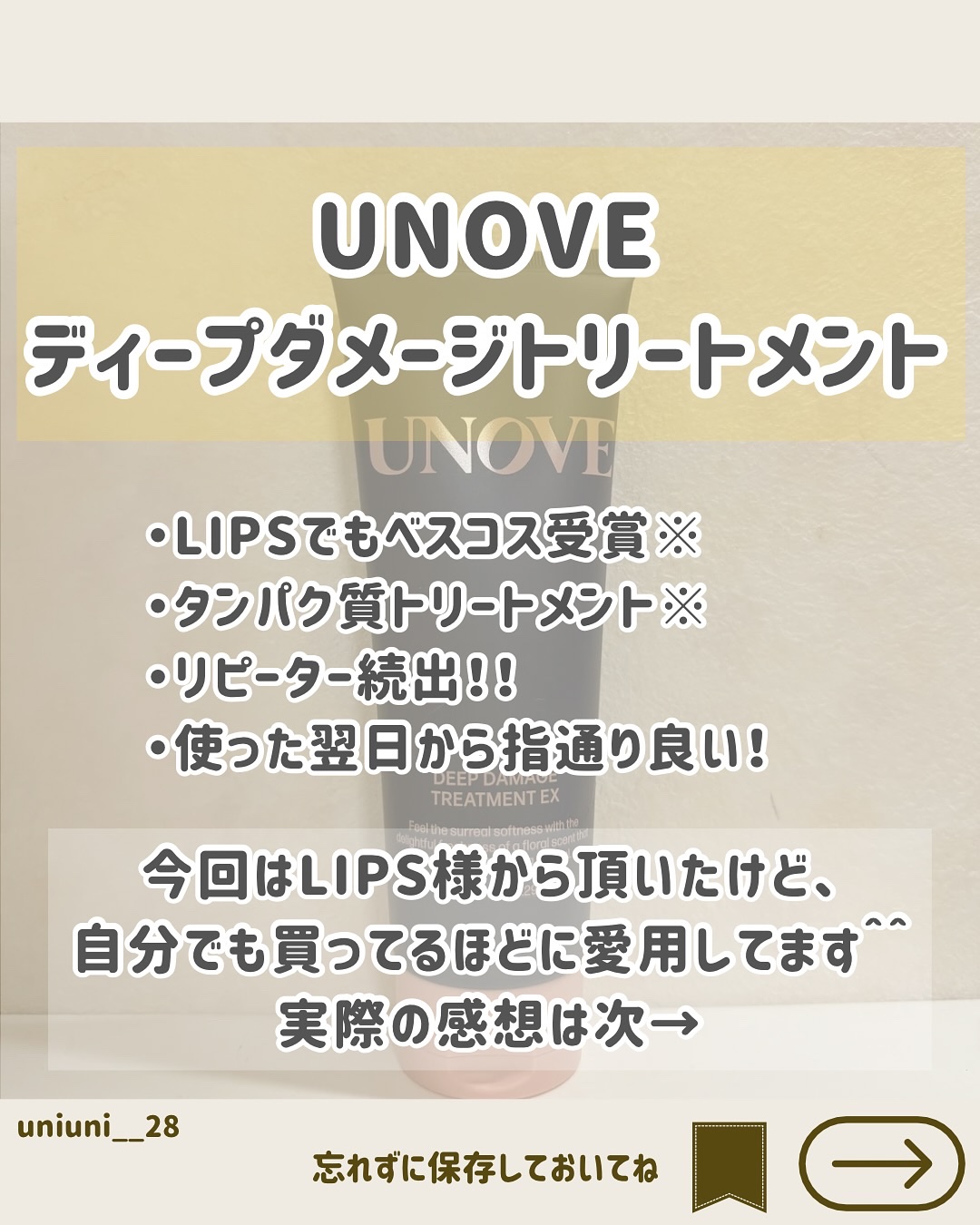 \今LIPSで人気のリピーター続出へアケア🪞/UNOVEディープダメージトリートメントEX日韓で数々の受賞記録を誇るタンパク質トリートメント!使った翌日からの指通りの良さに期待できる♪こっくりとしたテクスチャで髪の毛先にも馴染ませやすい!強す...